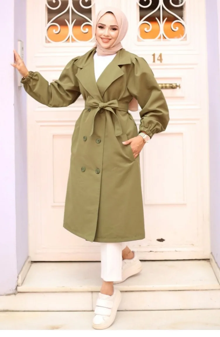 Schouder Geplooide Gedetailleerde Trenchcoat Kaki 4429 533