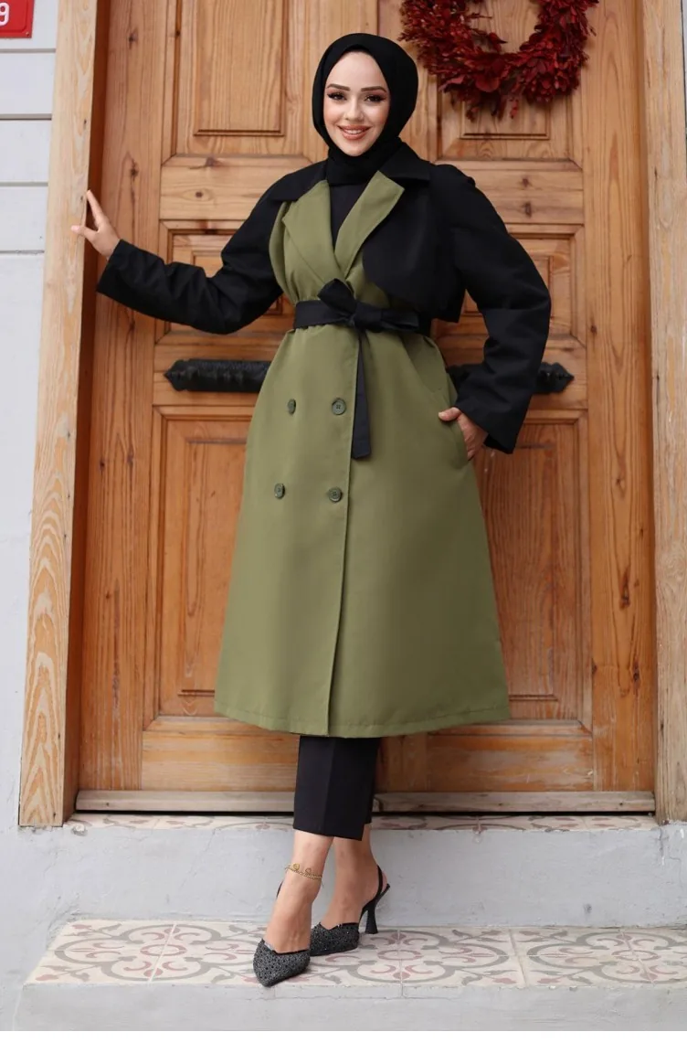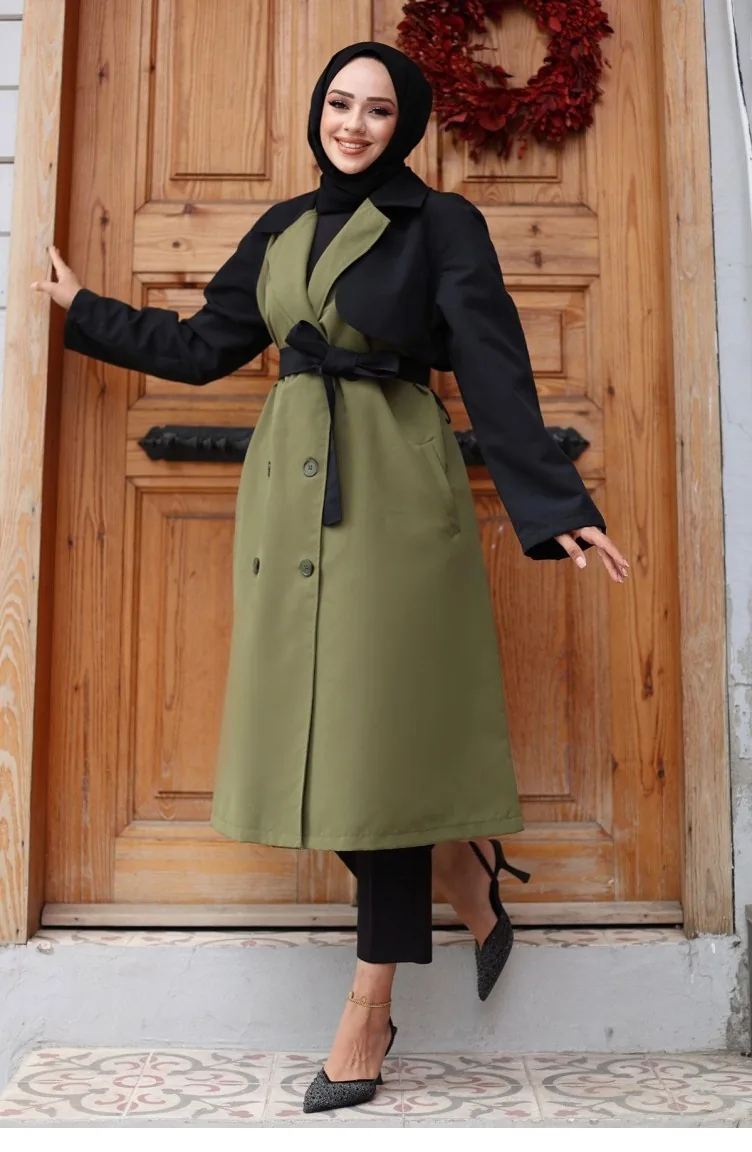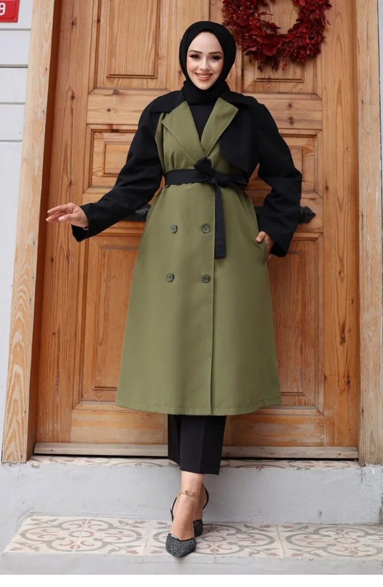 Trenchcoat Met Versierde Mouwen Kaki 4435 551