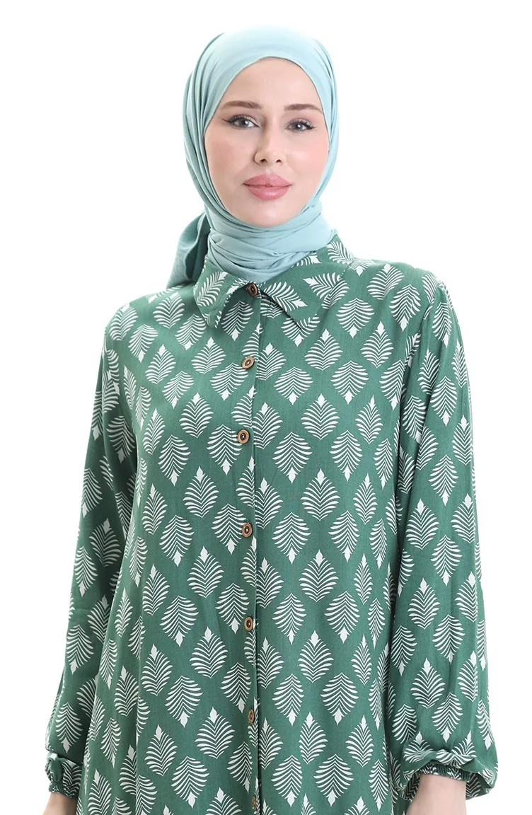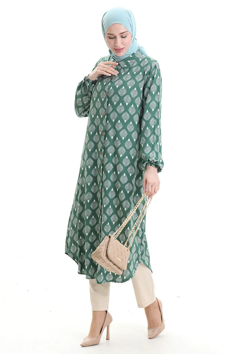 Emerald green color used. Viscose is a type of synthetic fabric and is convenient to use. Designed with patterned fabric. Buttons have been used to make it easy to use. It's made of elastic sleeves. Suitable for 4 seasons. Plus size option available.