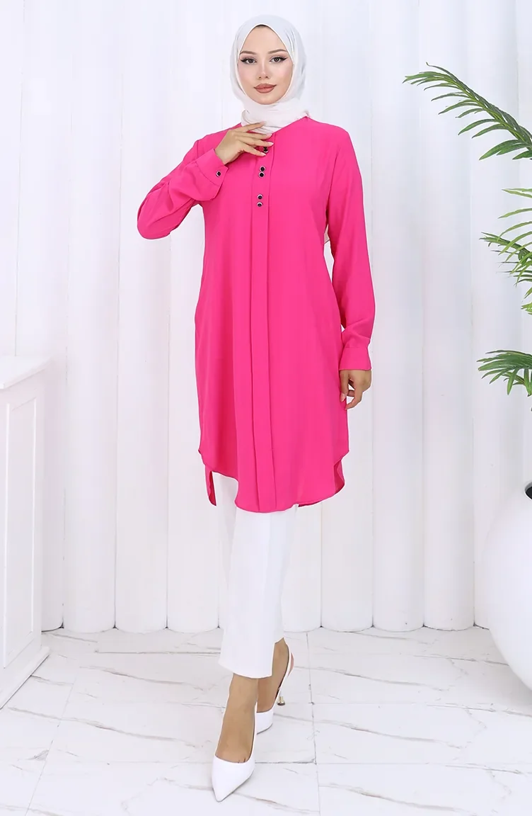 Knoop Gedetailleerde Tuniek 5133-04 Fuchsia 5133-04