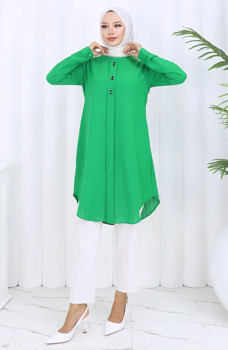 Knoop Gedetailleerde Tuniek 5133-06 Smaragdgroen 5133-06