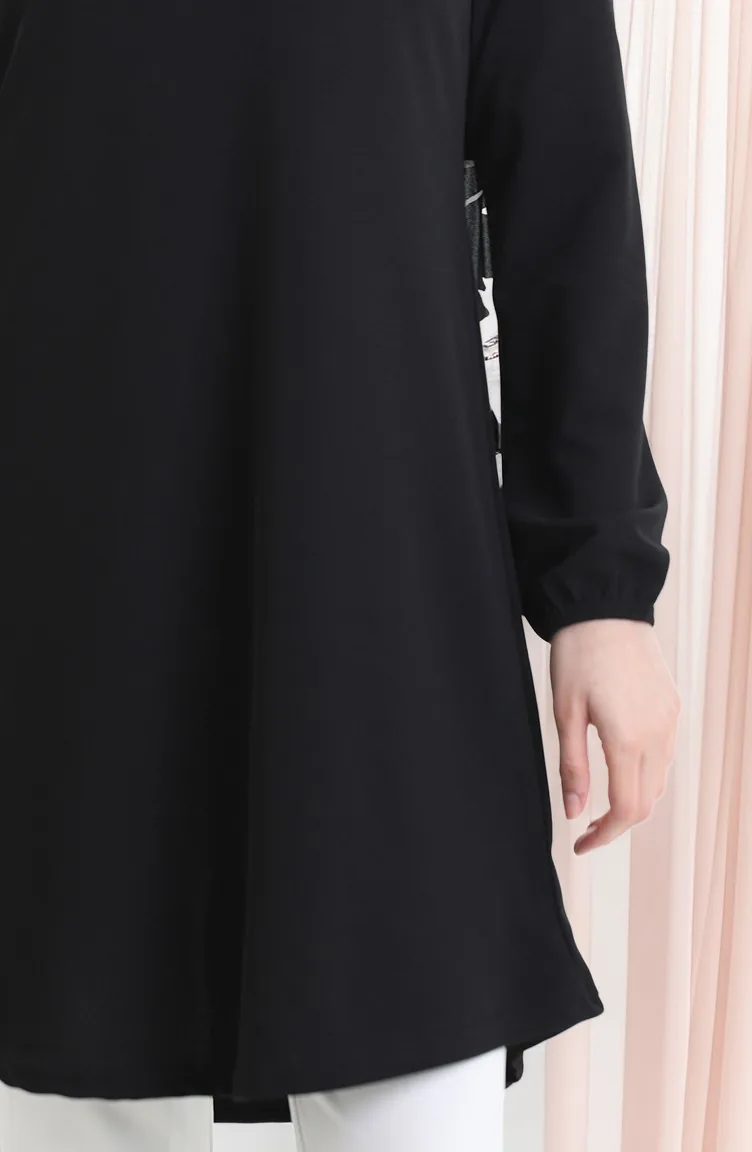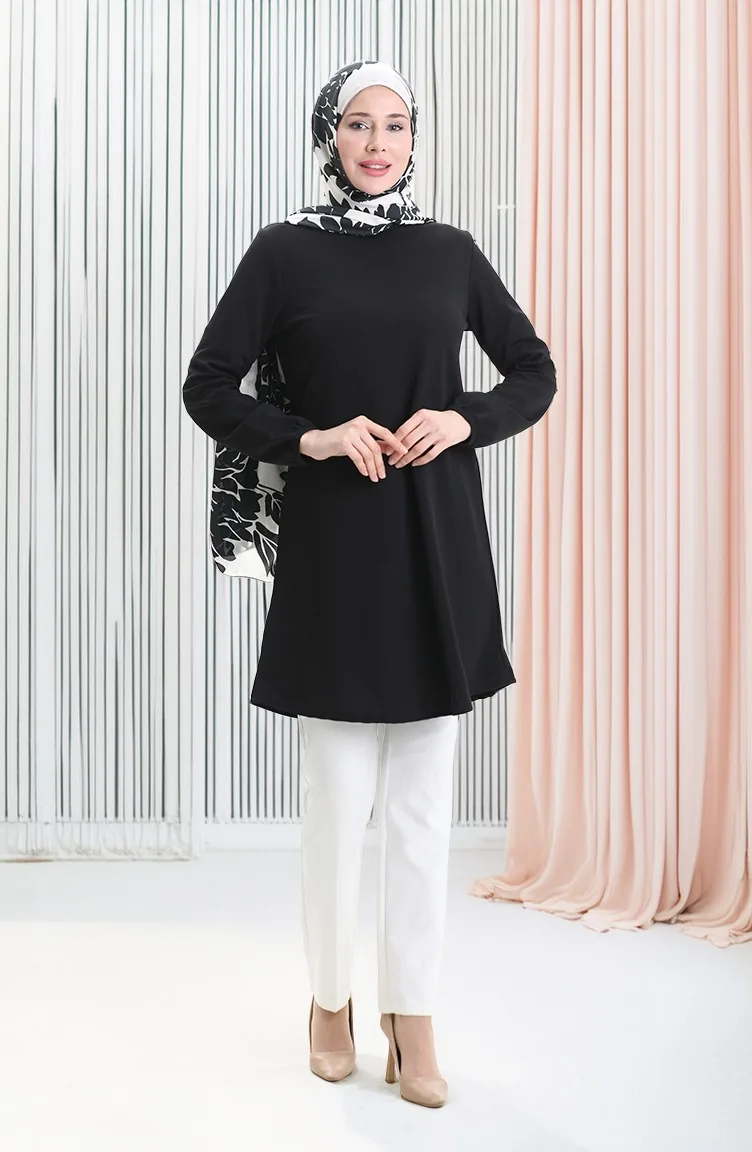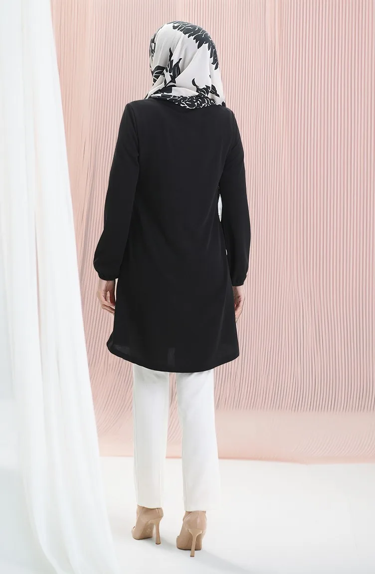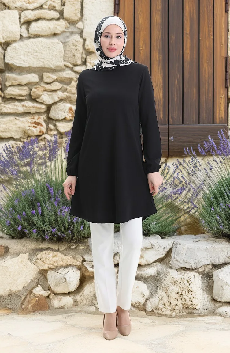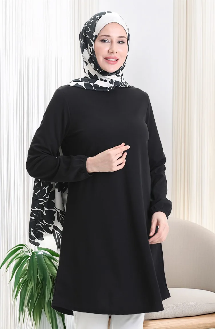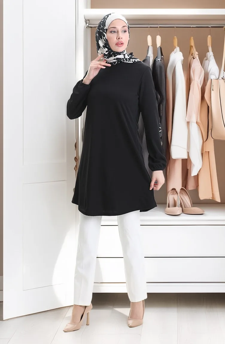 Seizoensgebonden Vloeiende Effen Tuniek Met Elastische Mouwen 8749-01 Zwart 8749-01