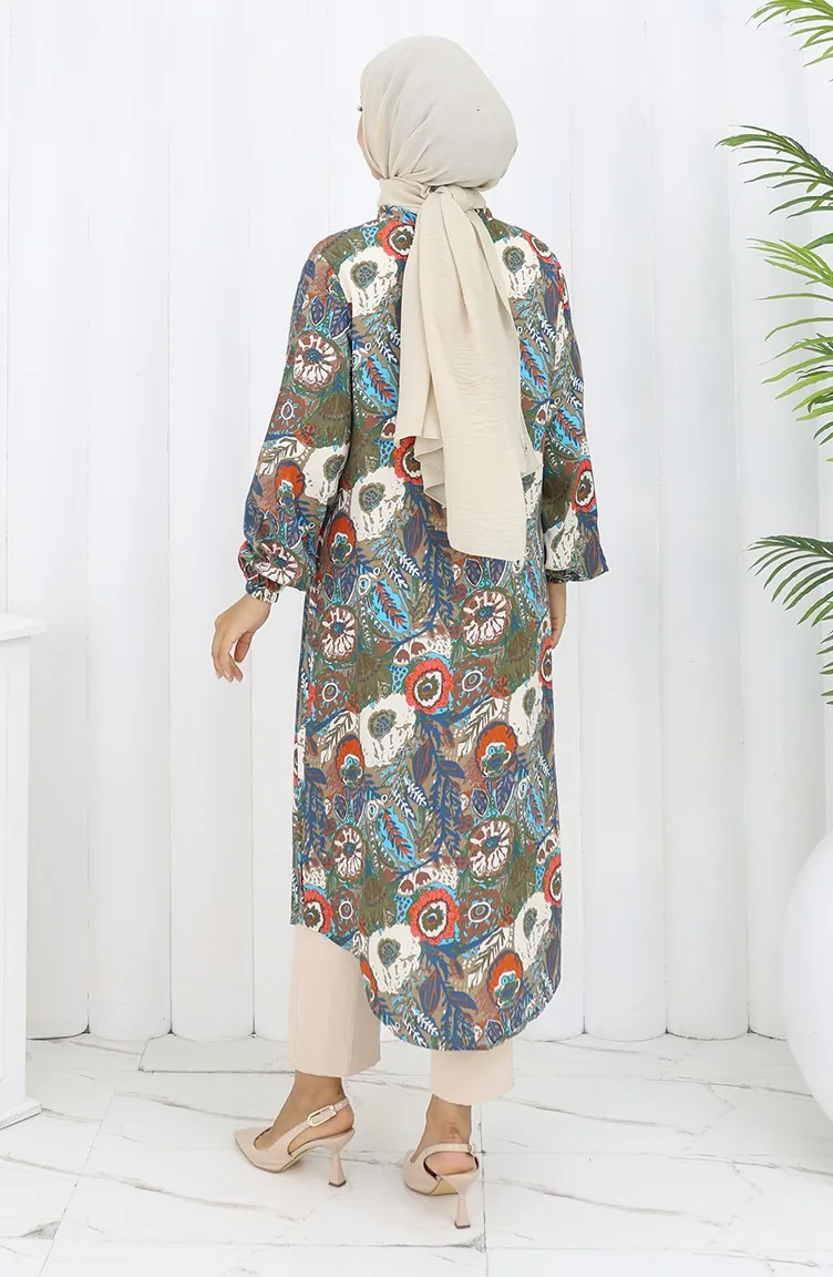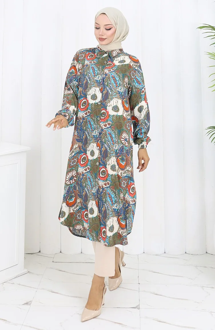 Tuniek Met Elastische Mouwen En Knopen 0134-03 Khaki Granaatappelbloem 0134-03