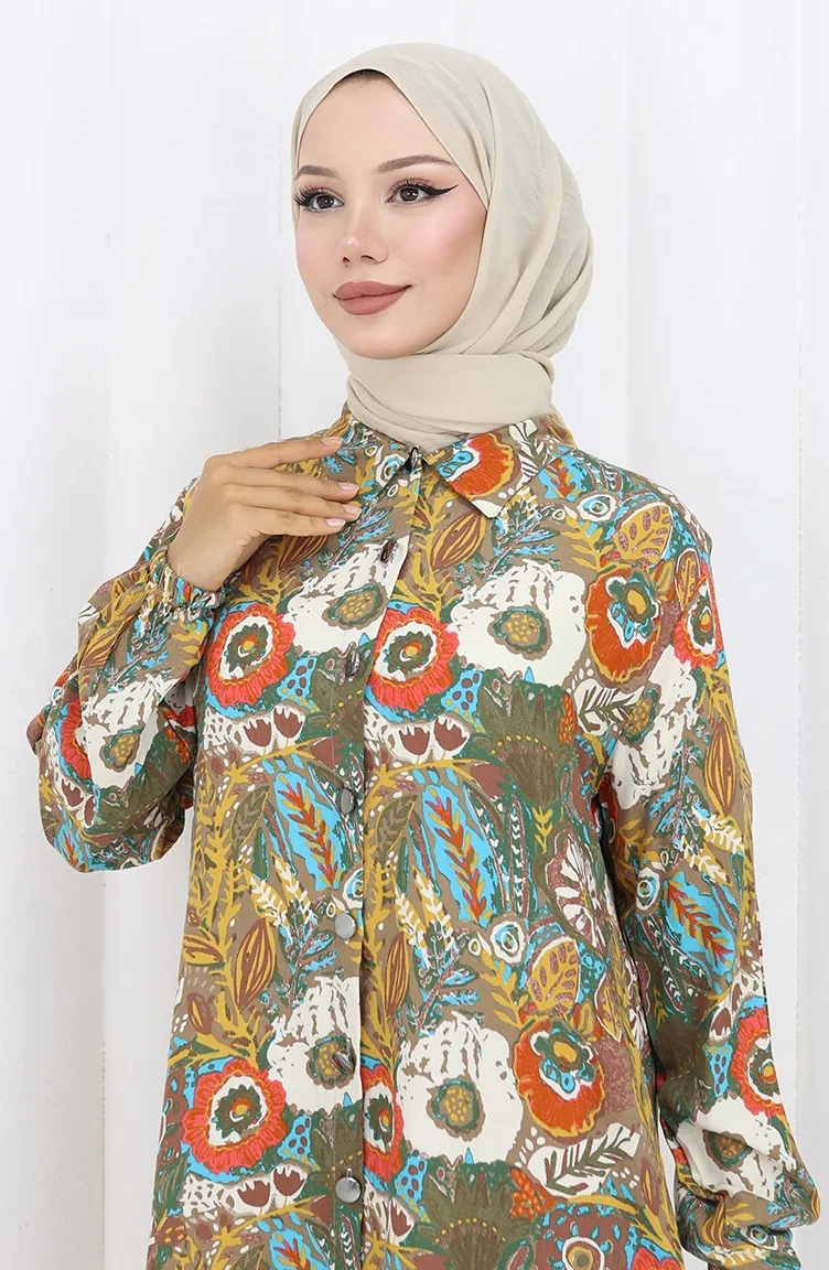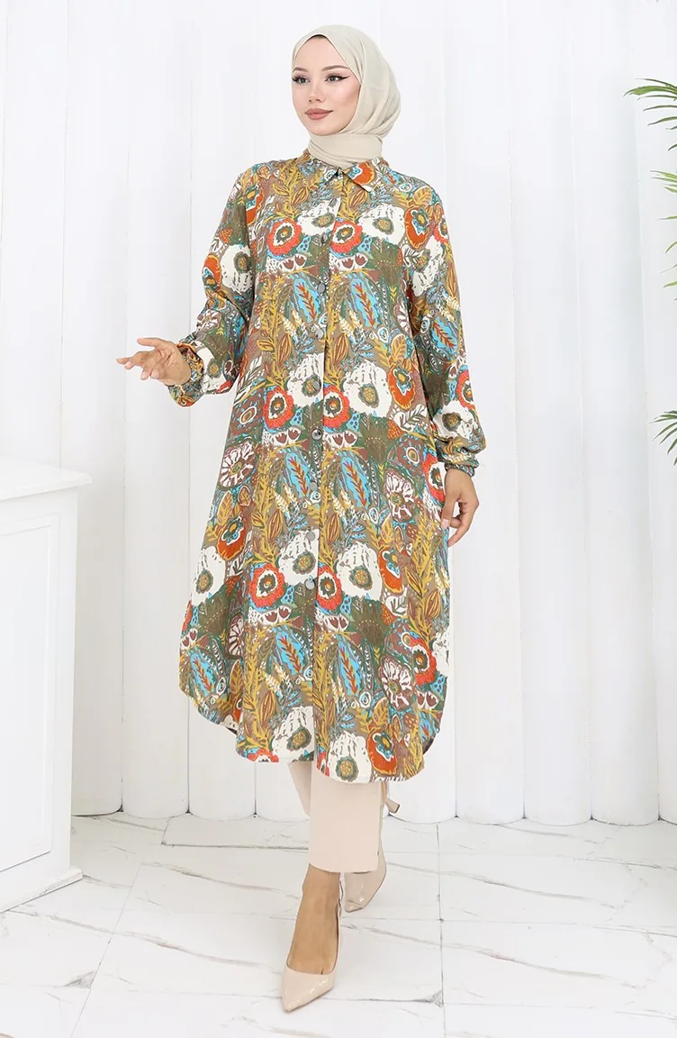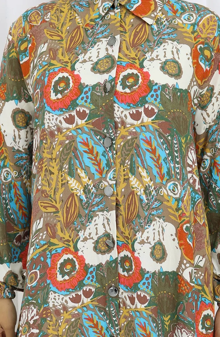 Tuniek Met Elastische Mouwen En Knopen 0134-05 Granaatappelbloem Mosterd 0134-05
