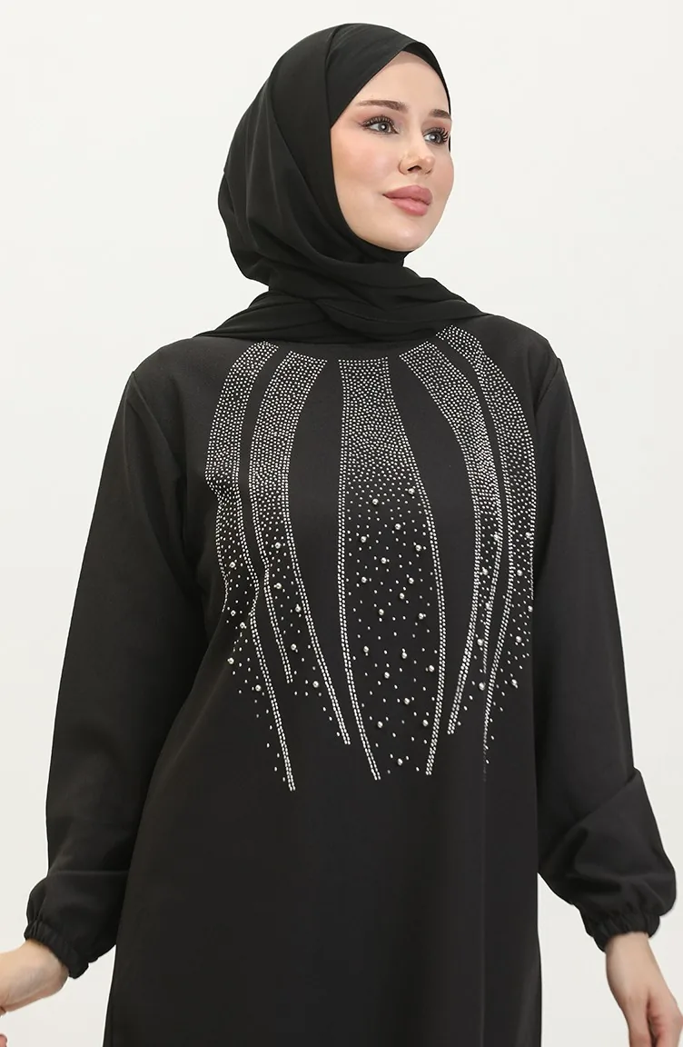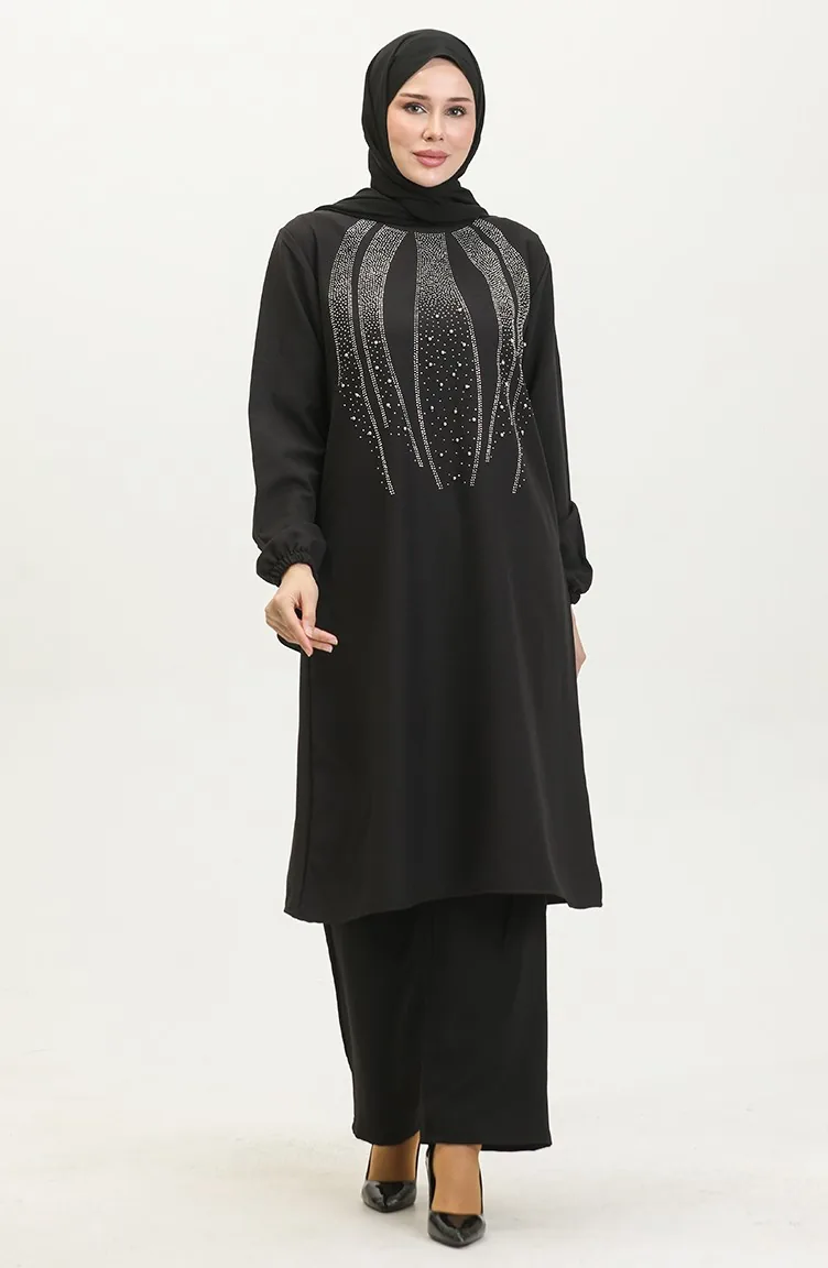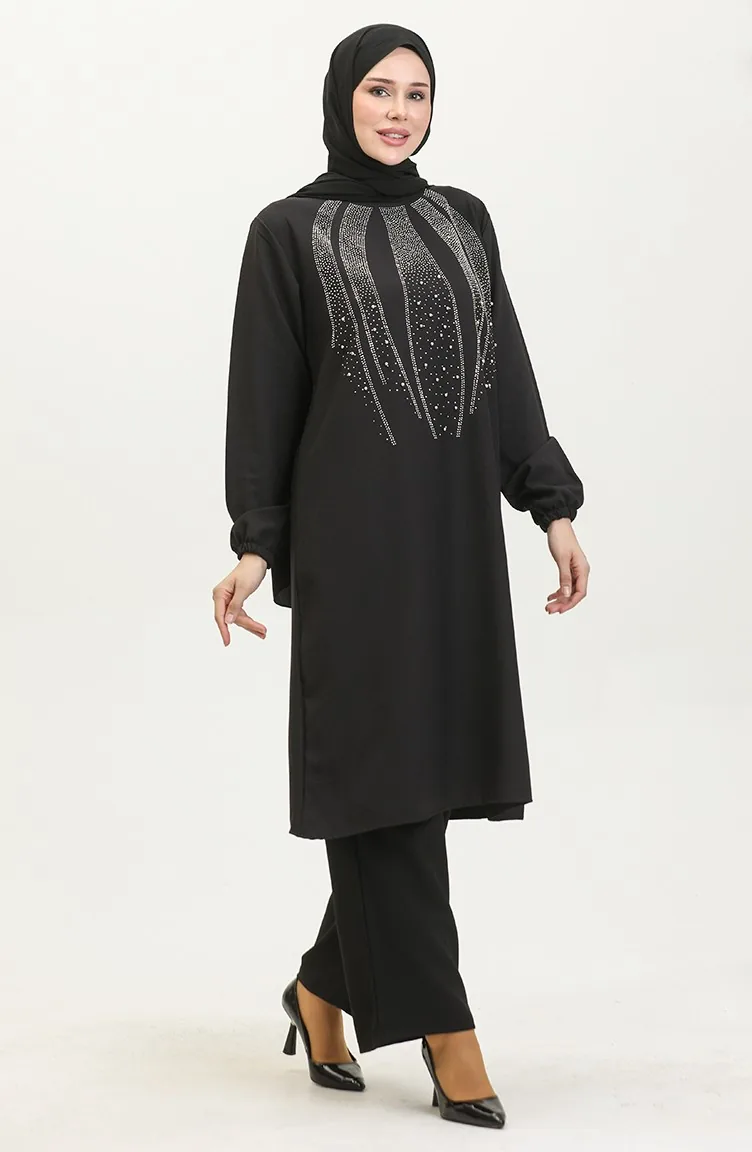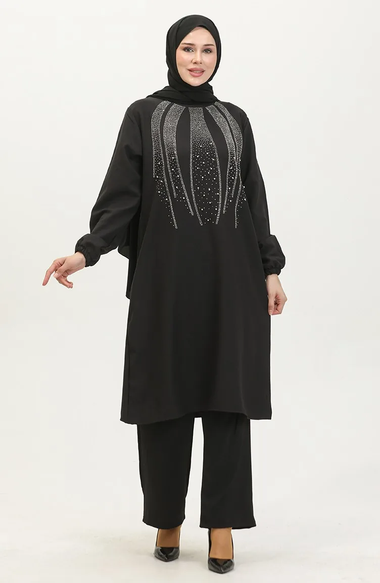 Avondjurk Met Steenprint Tuniekbroek Dubbel Pak 0410-04 Zwart 0410-04