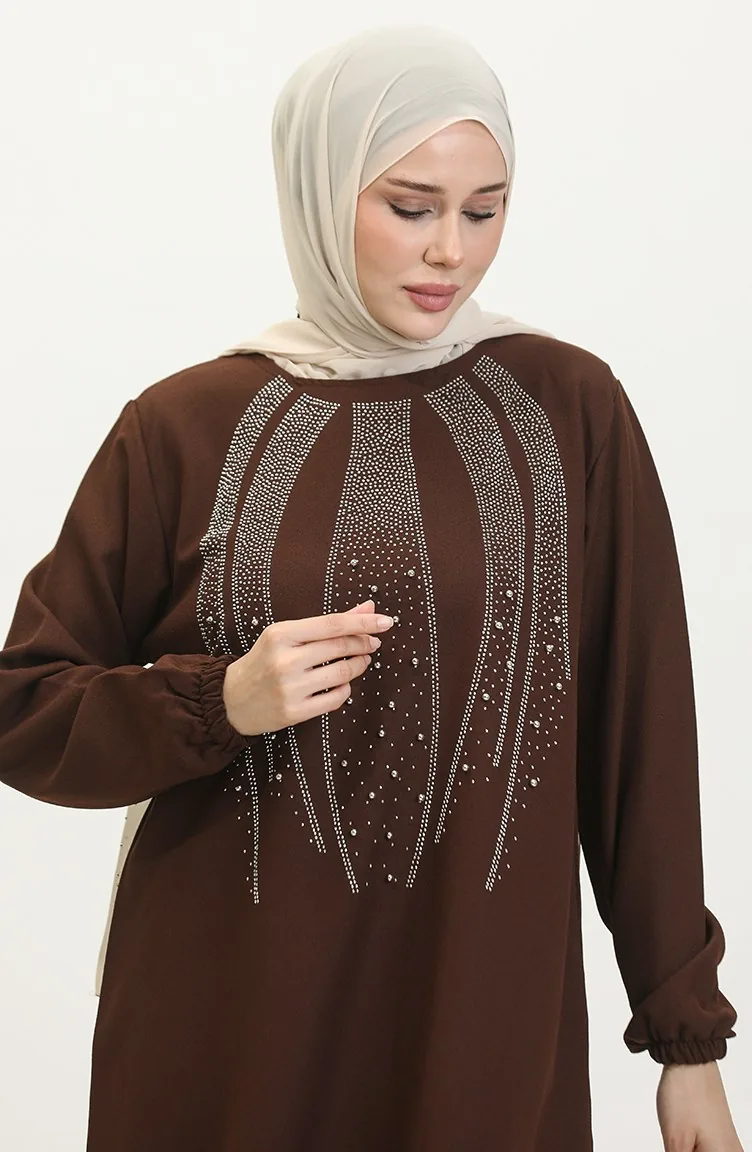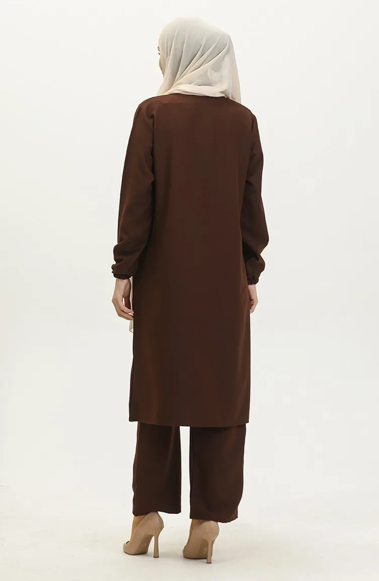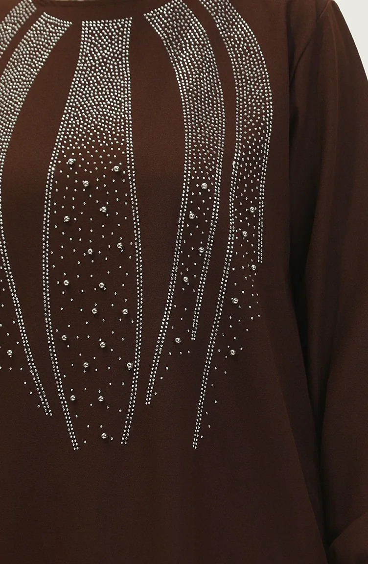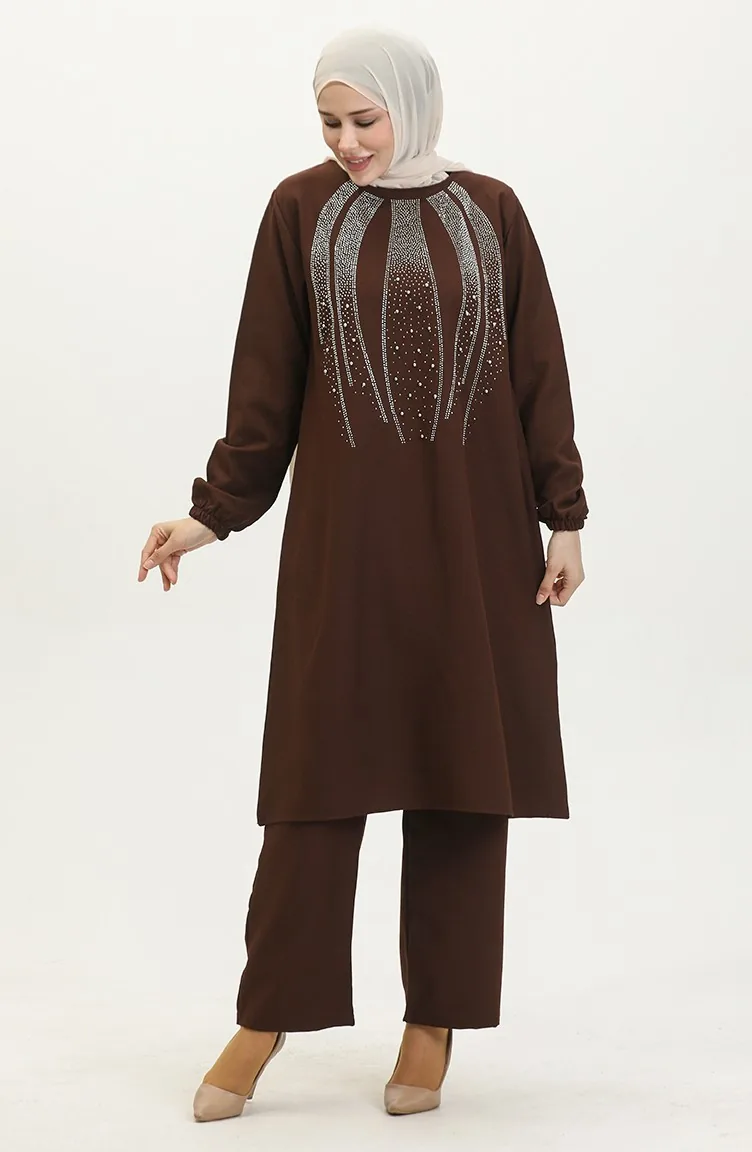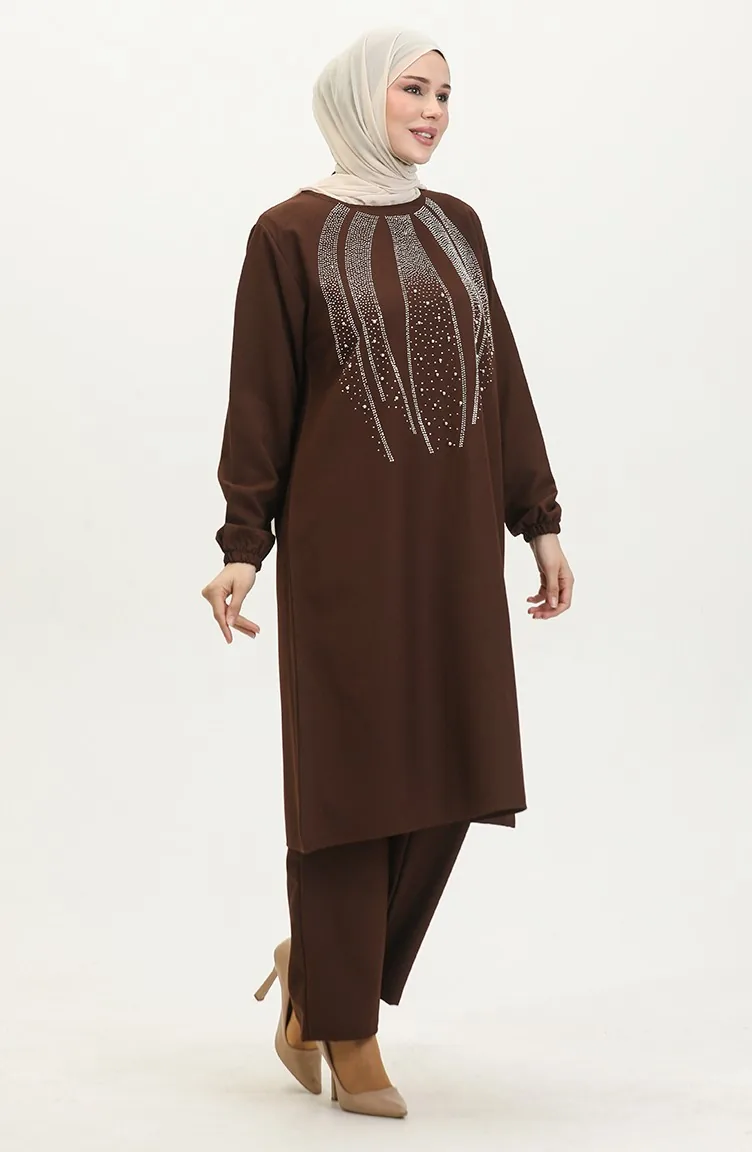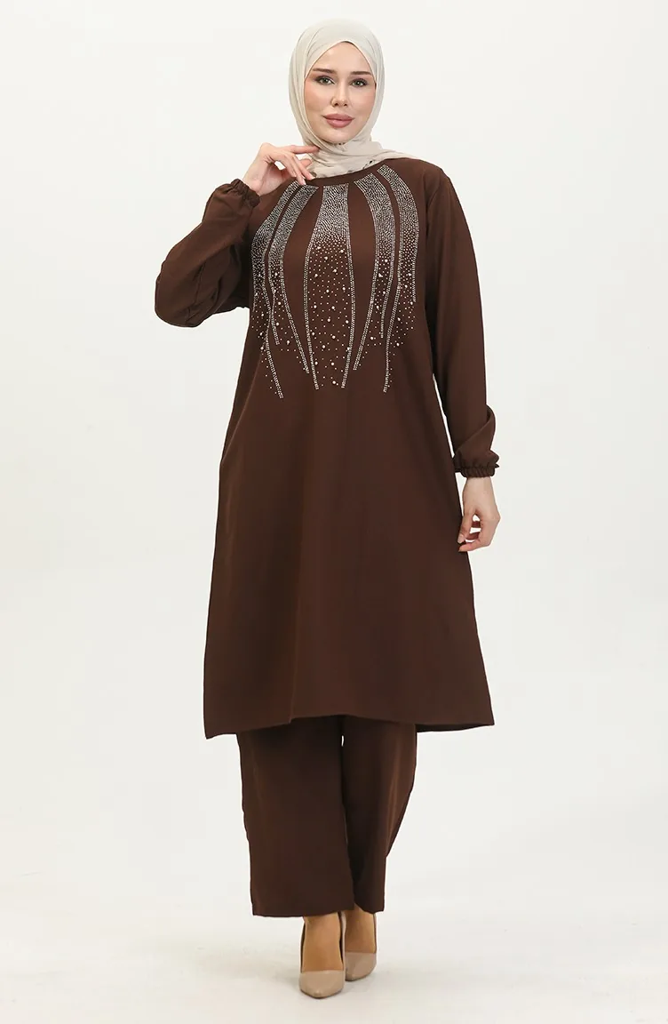 Avondjurk Met Steenprint Tuniekbroek Dubbel Pak 0410-05 Bruin 0410-05