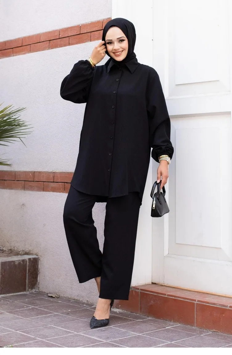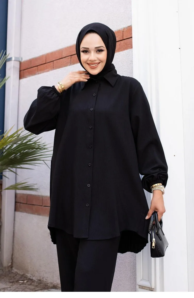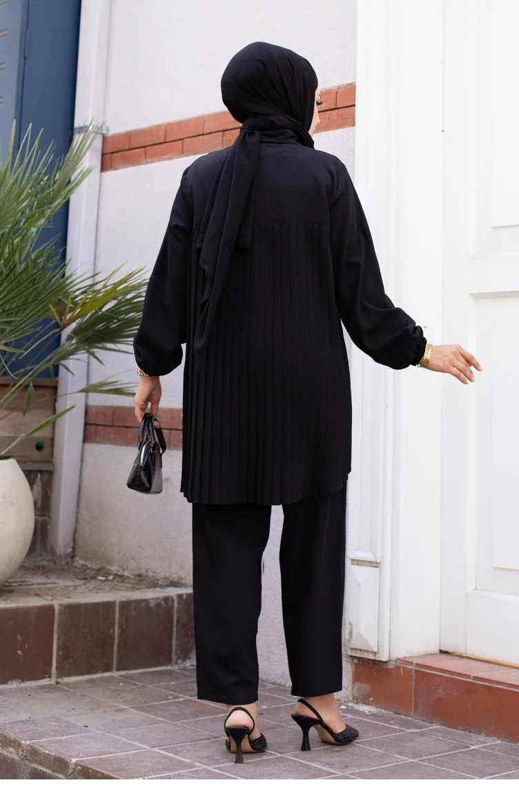 Geplooid Gedetailleerd Hijab Zwart Pak 502
