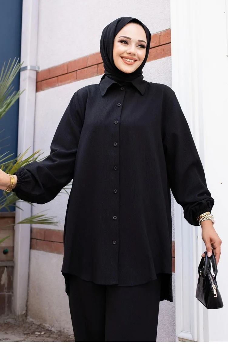 Black color is used. Polyester fabric often prevents wrinkling. It has a plain appearance. Suitable for 4 seasons. Plus size option available.