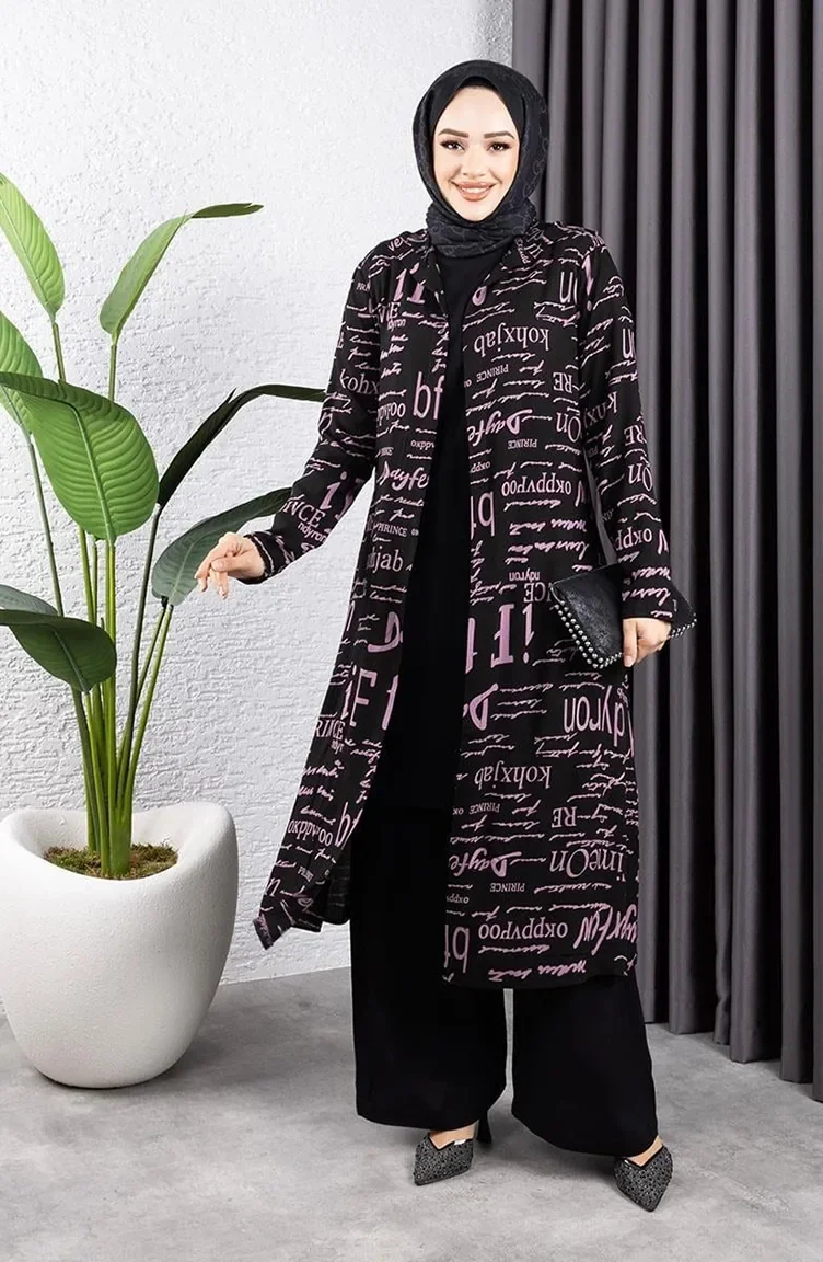 Geschreven 3-delige Hijabset 4012-02 Black Rose Dusty 4012-02