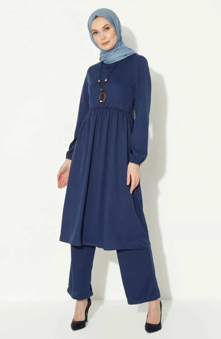 Indigo color is used. Polyester fabric often prevents wrinkling. It has a plain appearance. Suitable for 4 seasons. Plus size option available.