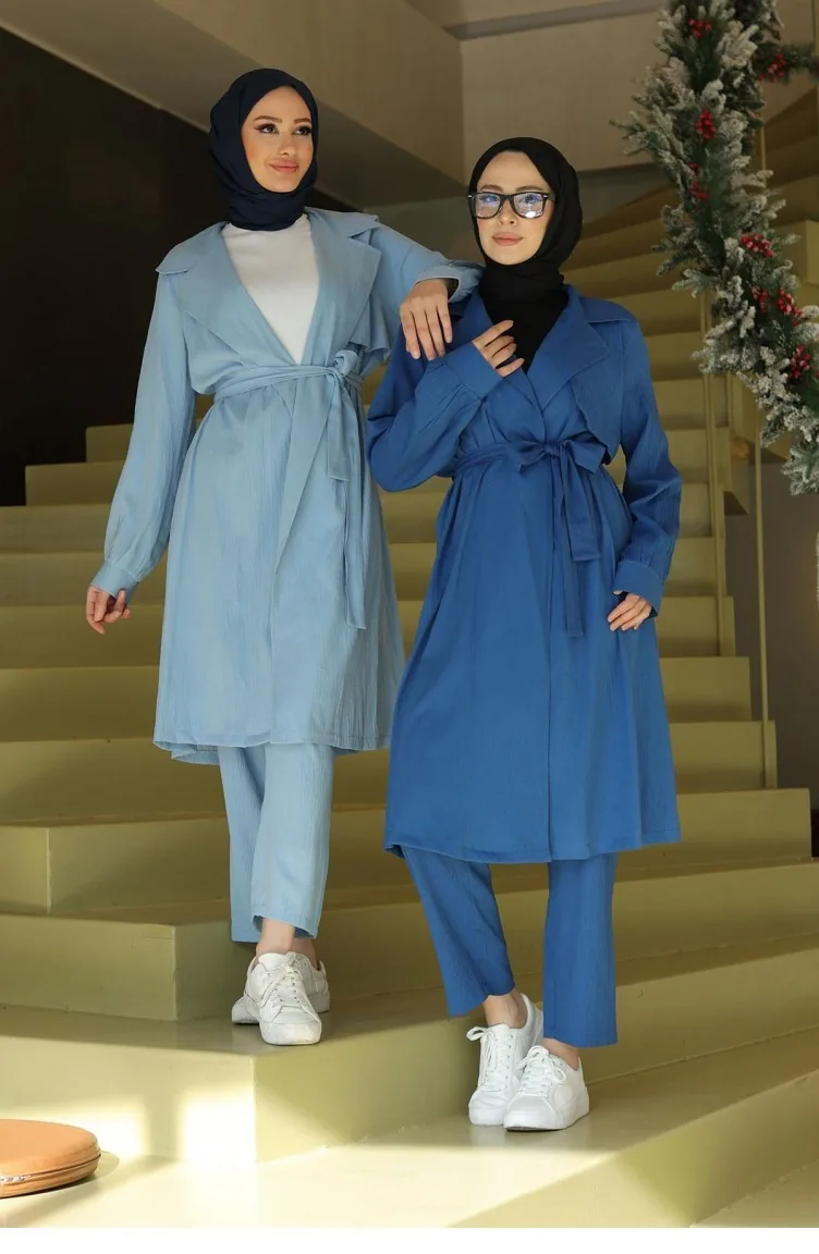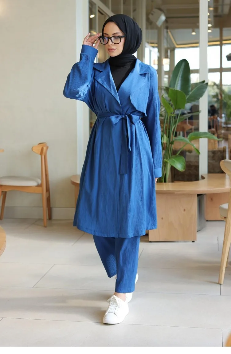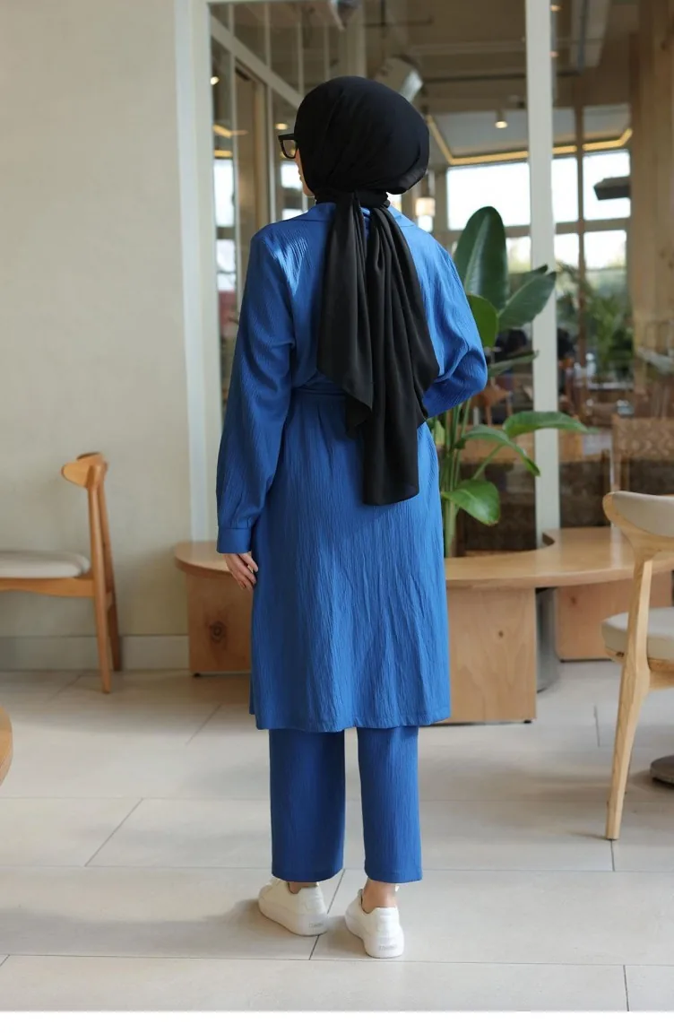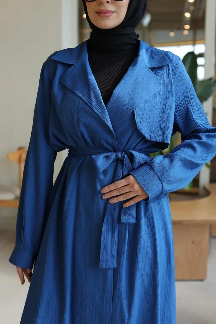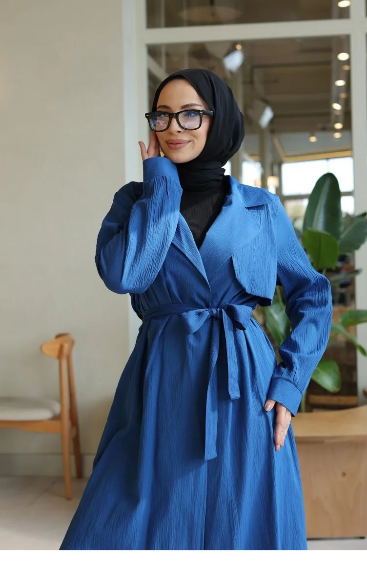 Indigo color is used. Polyester fabric often prevents wrinkling. It has a plain appearance. Suitable for 4 seasons. Plus size option available.