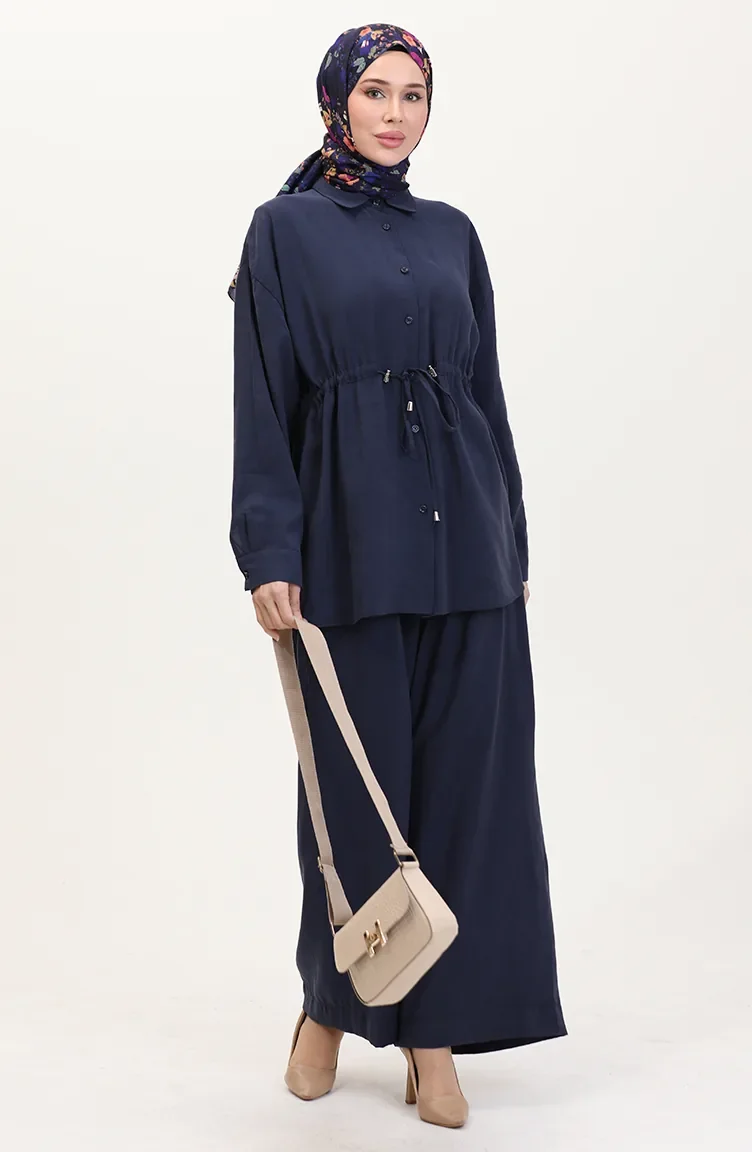 Modal Stof Tuniek Broek Tweedelig Pak 4064-04 Marineblauw 4064-04