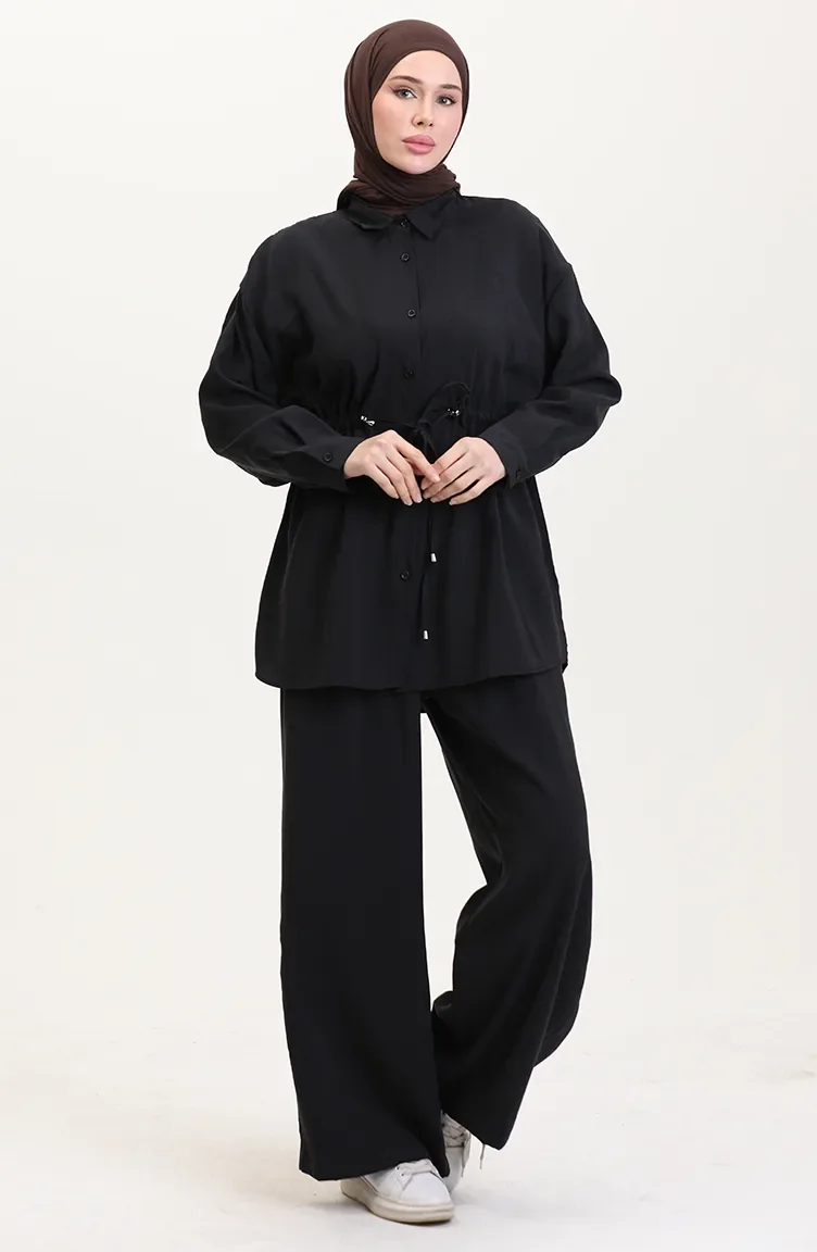 Modal Stof Tuniek Broek Tweedelig Pak 4064-05 Zwart 4064-05