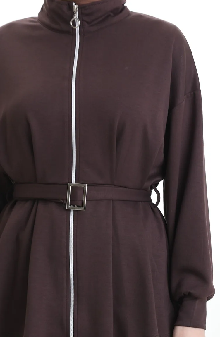 The cotton fabric has an absorbent texture. It has a plain appearance. Belt detail has used for a stylish look. Suitable for 4 seasons. The size worn by the model, is the one on the image.