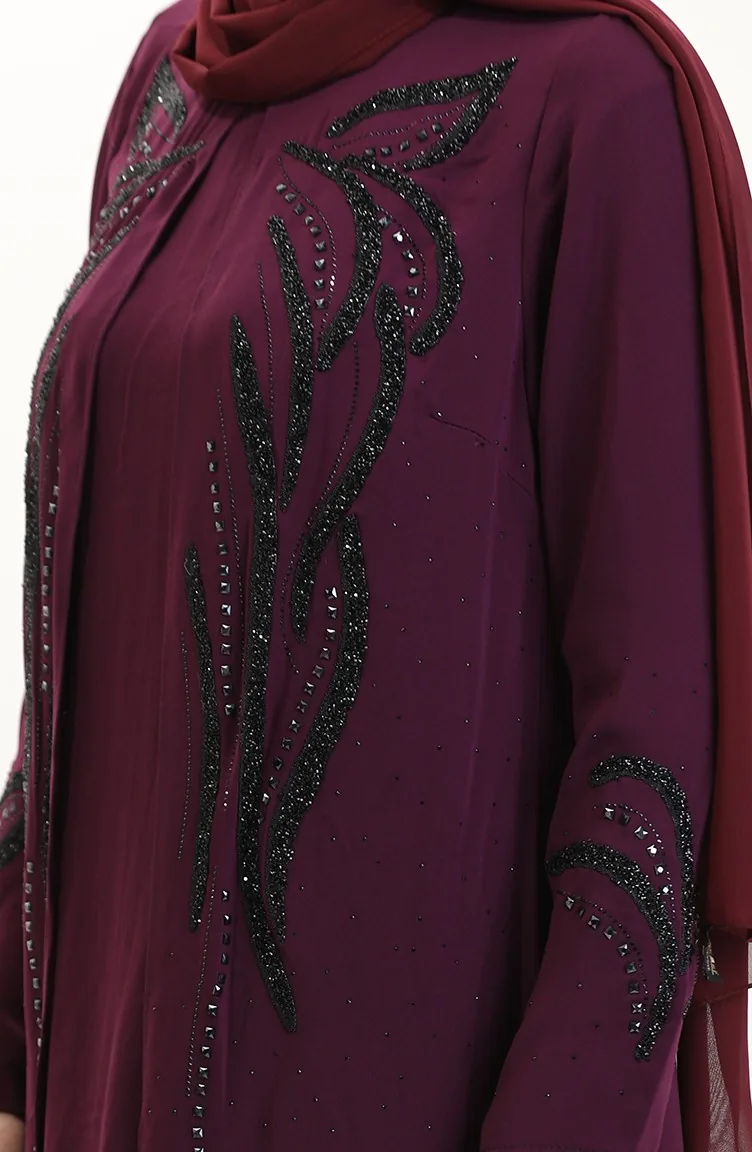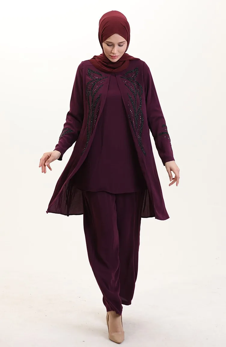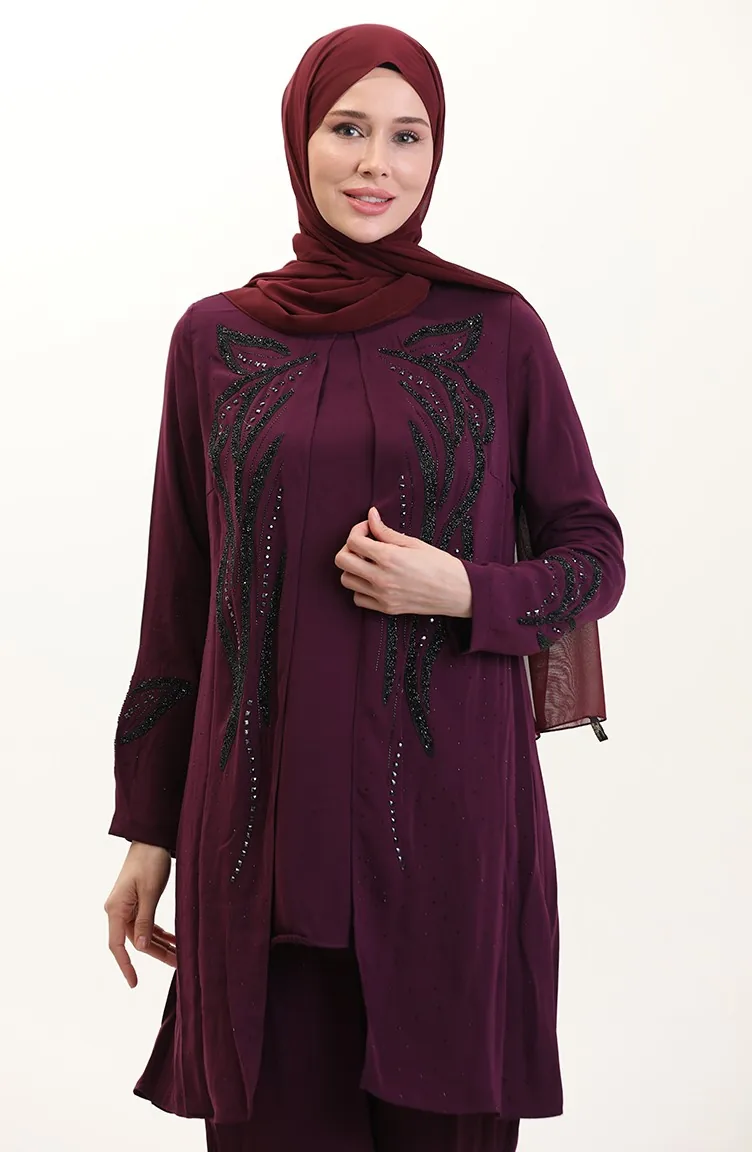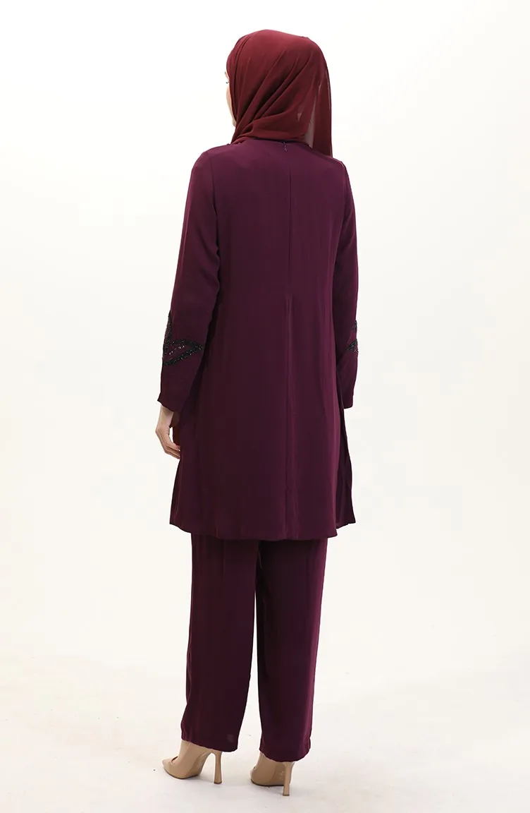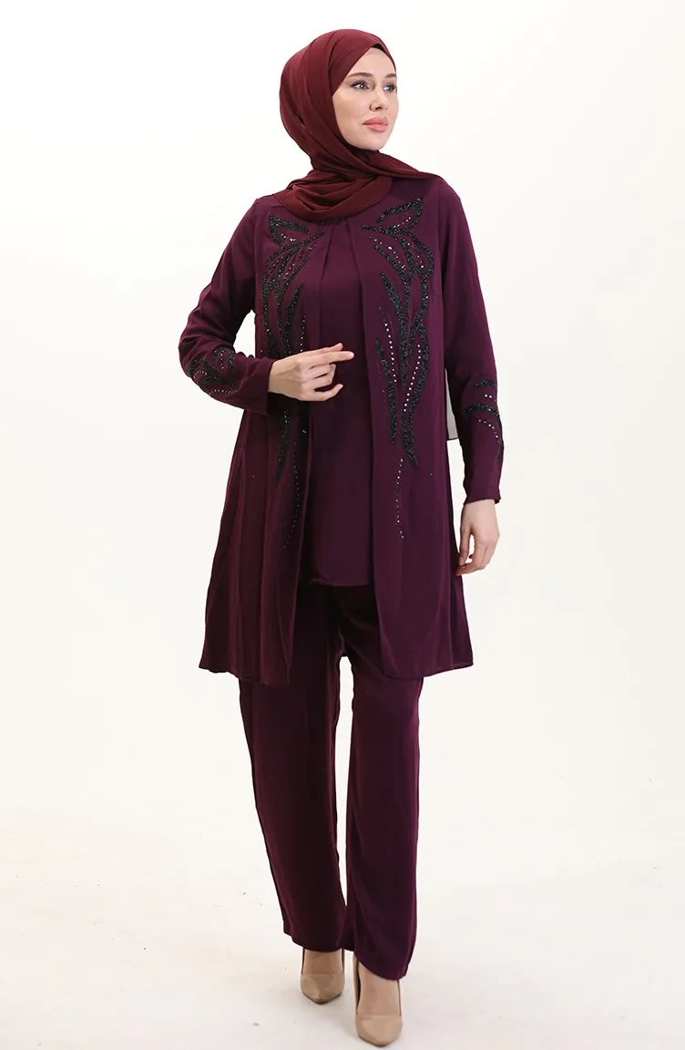 Plus Size Stoned Tuniek Broek Tweedelige Set 6210-04 Pruim 6210-04