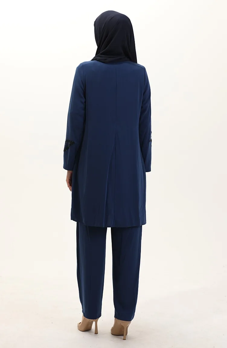 Plus Size Stoned Tuniek Broek Tweedelige Set 6210-05 Indigo 6210-05