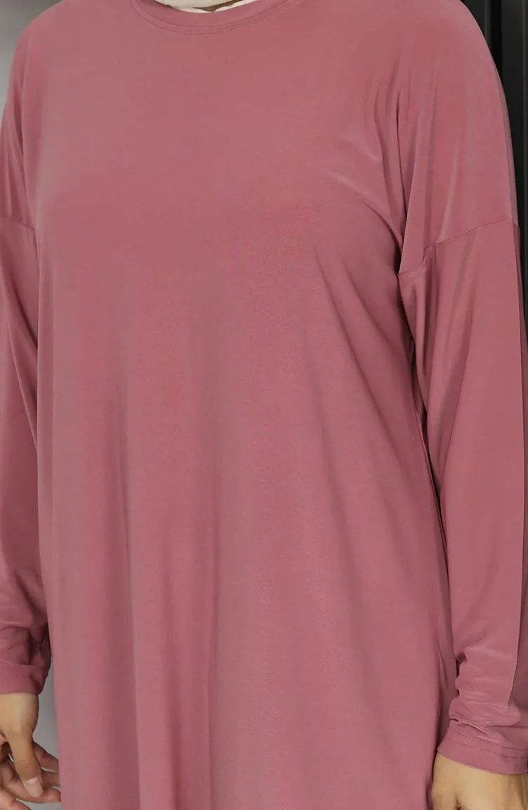 The light pink color is used. It has a plain appearance. When the tunic combined with another product, you will get a nice suit. The Zero collar is preferred for all types of clothing. Suitable for 4 seasons. The size worn by the model, is the one on the image.