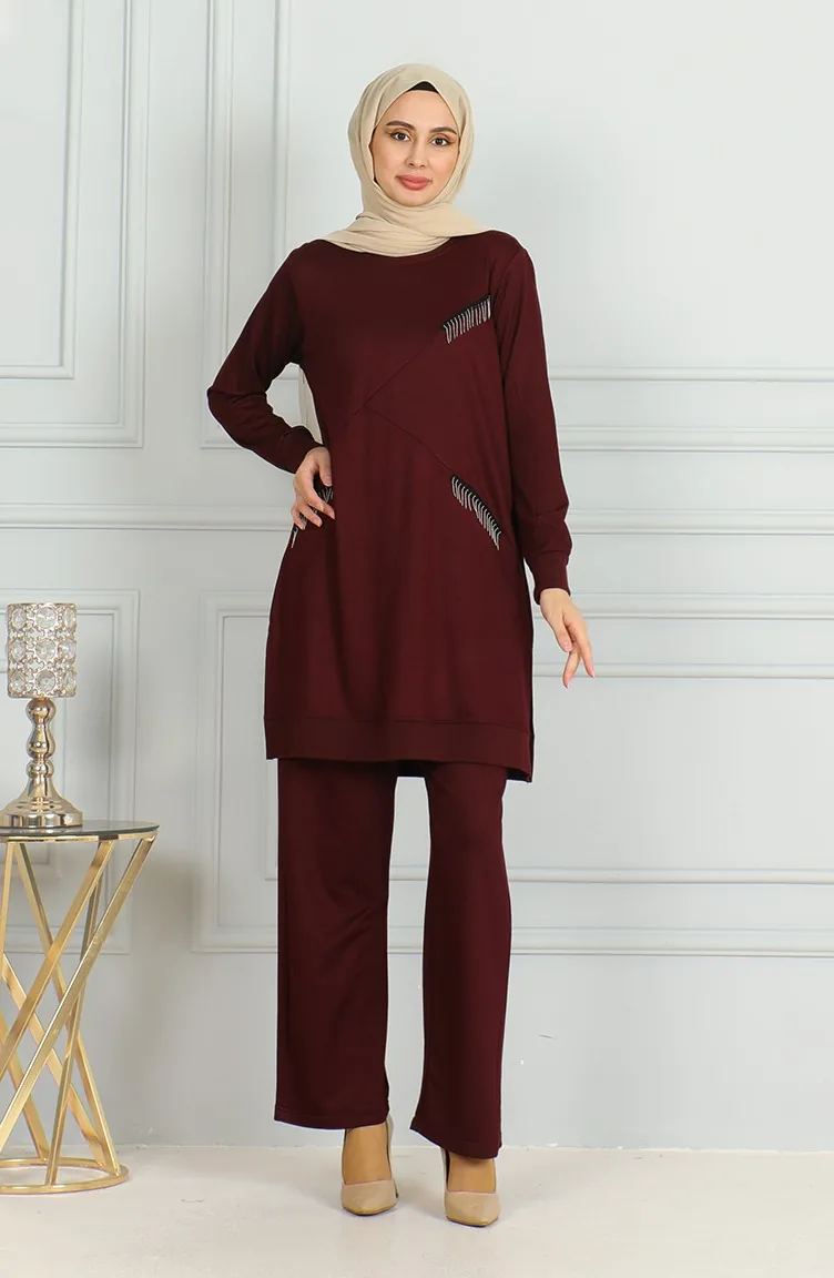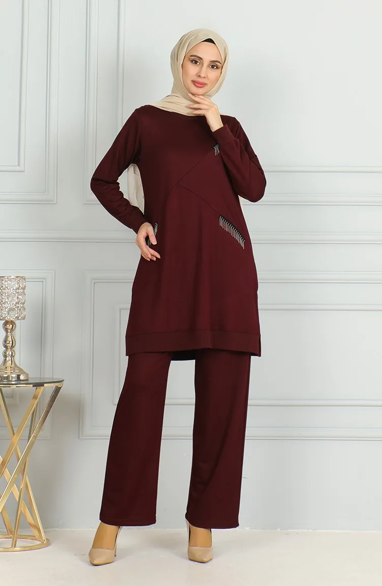 Tuniekbroek Met Gedetailleerde Kwastjes Dubbel Pak 20042-09 Pruim 20042-09
