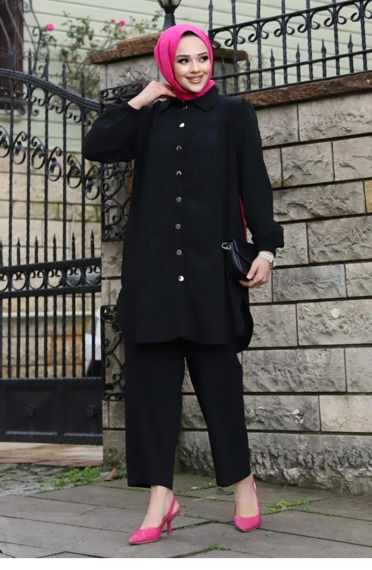 Verzamelen Van Gedetailleerd Hijab Zwart Pak 399