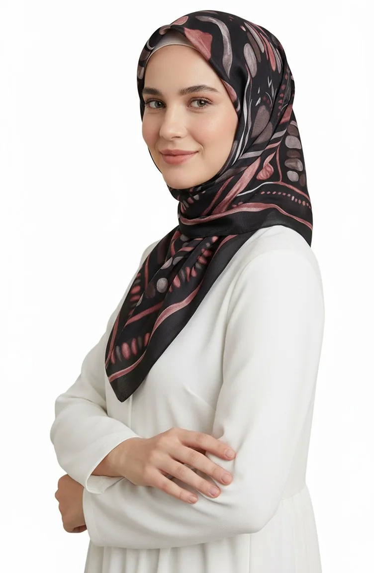 Amberkleurige Sjaal Met Patroon 70326-05 Zwarte Roos 70326-05