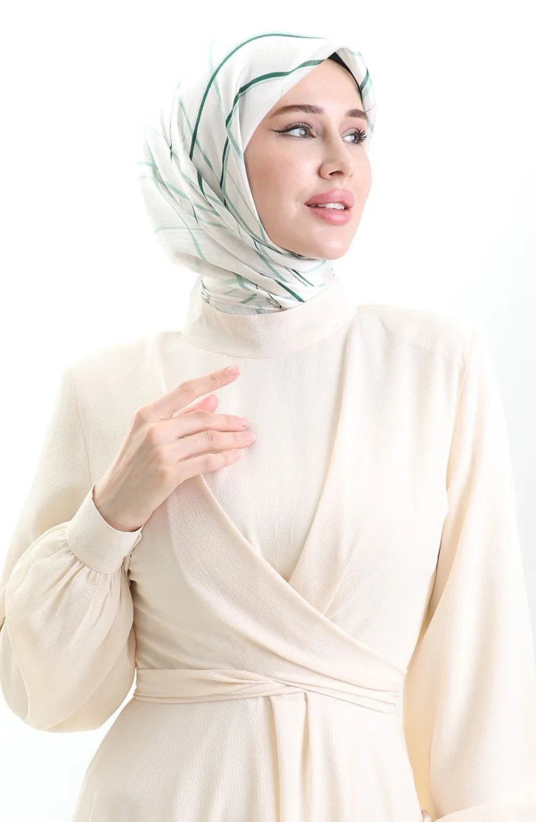 Emerald green color used. Polyester fabric often prevents wrinkling. Designed with patterned fabric. Suitable for 4 seasons. Length is adjusted according to standard size measurements.
