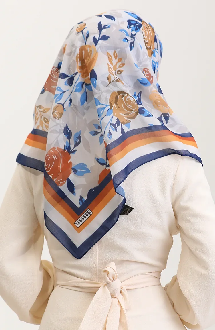 Gestreepte Katoenen Sjaal 2074-01 Marineblauw Mosterdgeel 2074-01