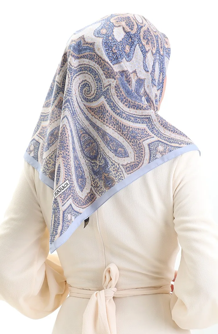 Karaca Gebloemde Katoenen Sjaal 81098-08 Babyblauw 81098-08