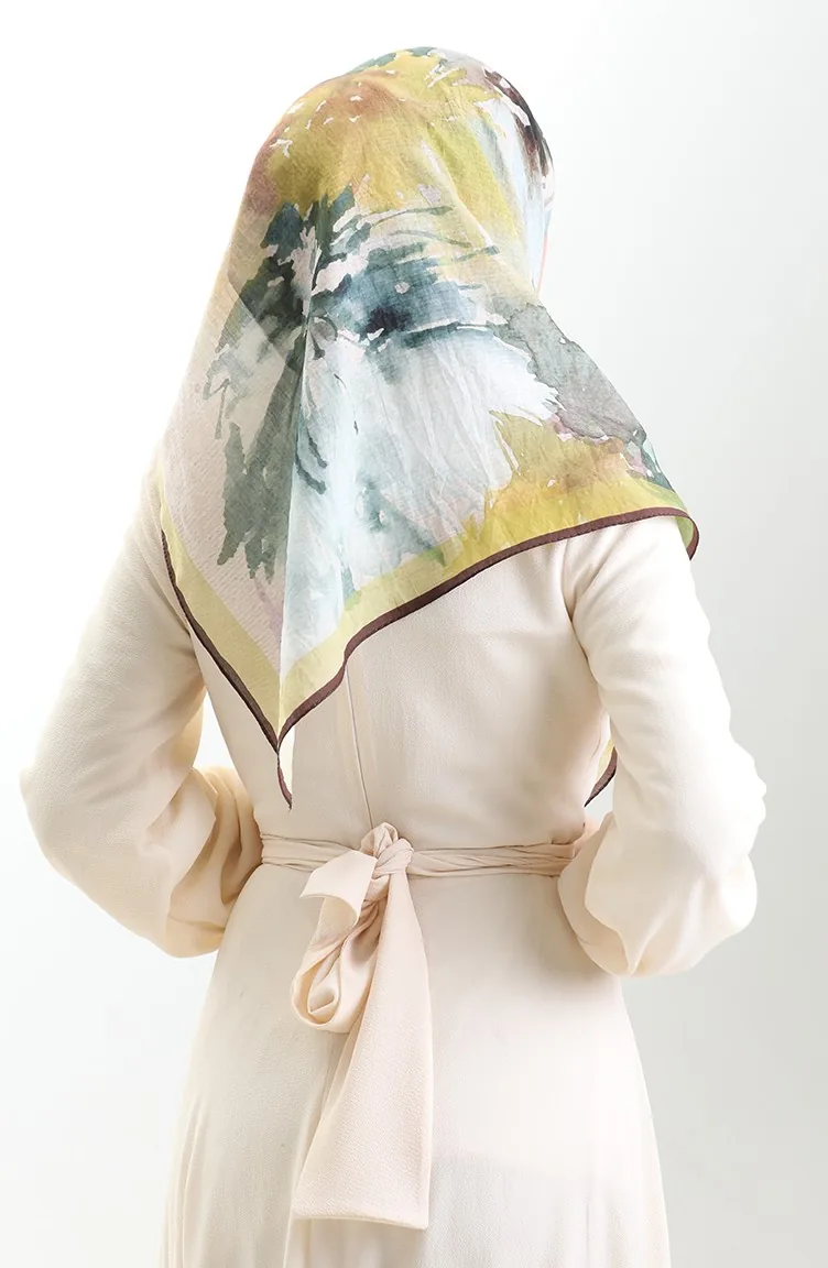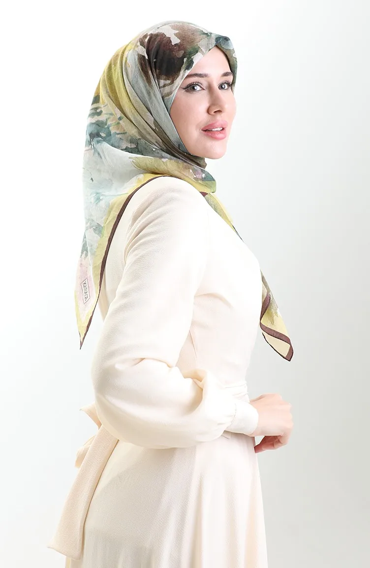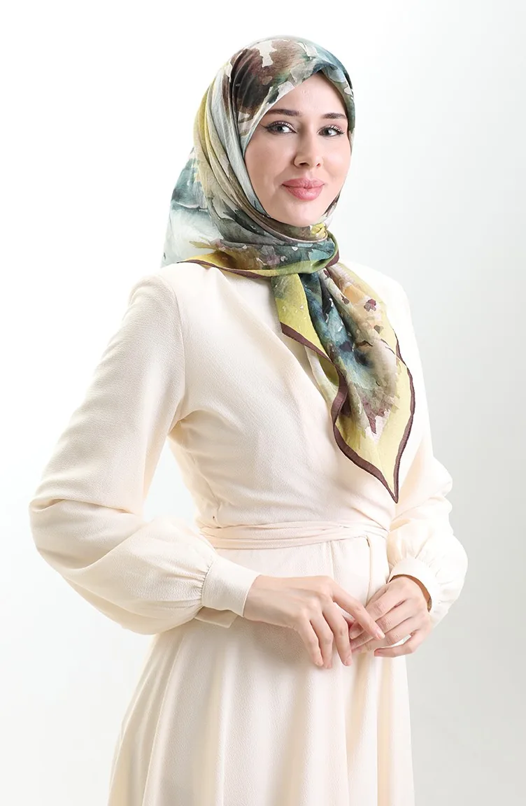 Karaca Patroon Sjaal Van Natuurlijke Vezels 82016-11 Bitterbruingroen 82016-11