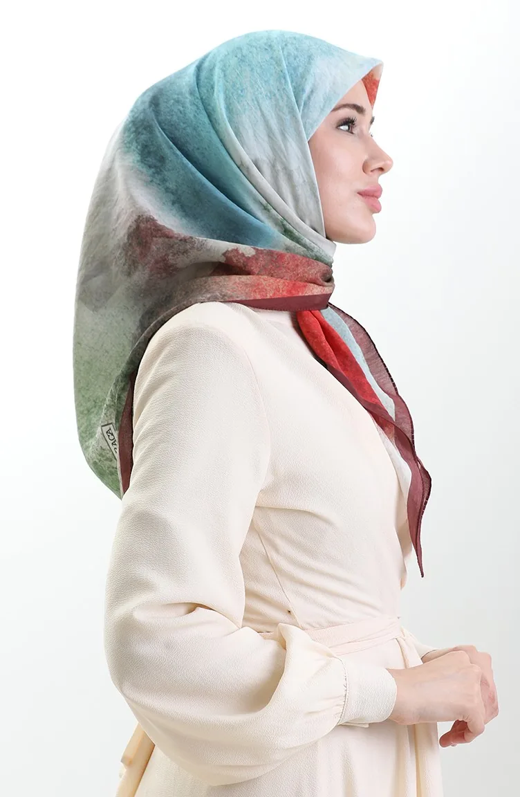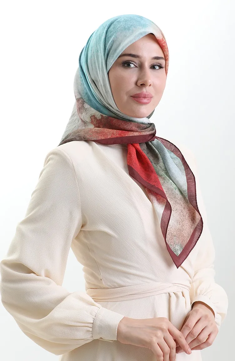 Karaca Patroon Sjaal Van Natuurlijke Vezels 82018-08 Claret Red Turquoise 82018-08
