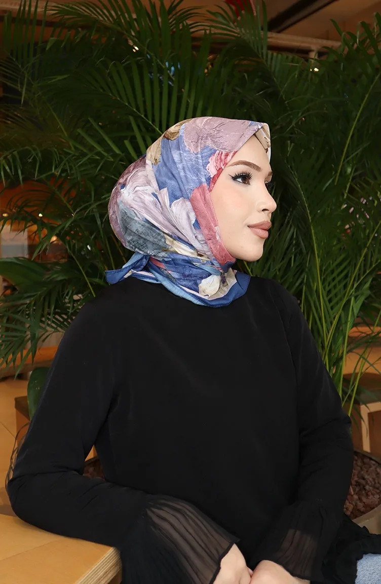 Katoenen Coconsjaal Met Bloemenmotief 70336-07 Licht Marineblauw 70336-07