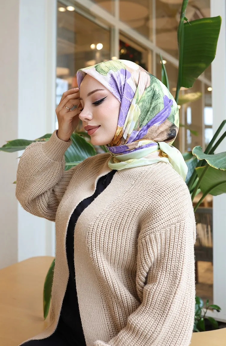 Katoenen Coconsjaal Met Bloemenmotief 70336-10 Geel Lila 70336-10