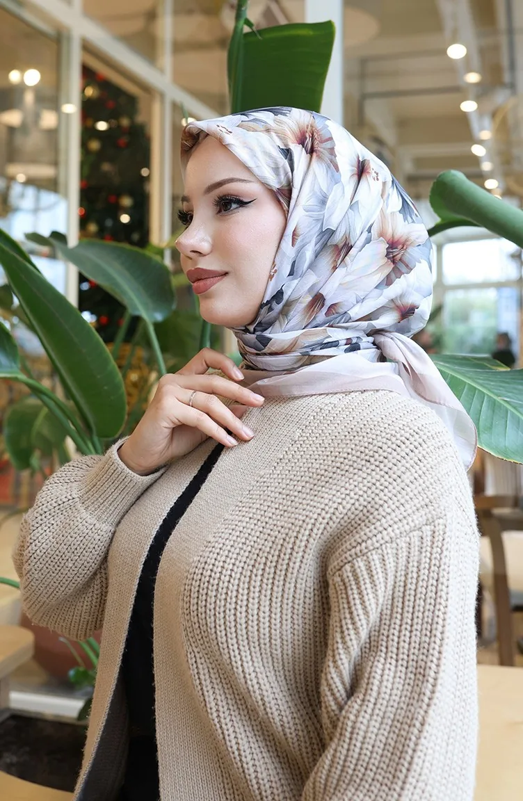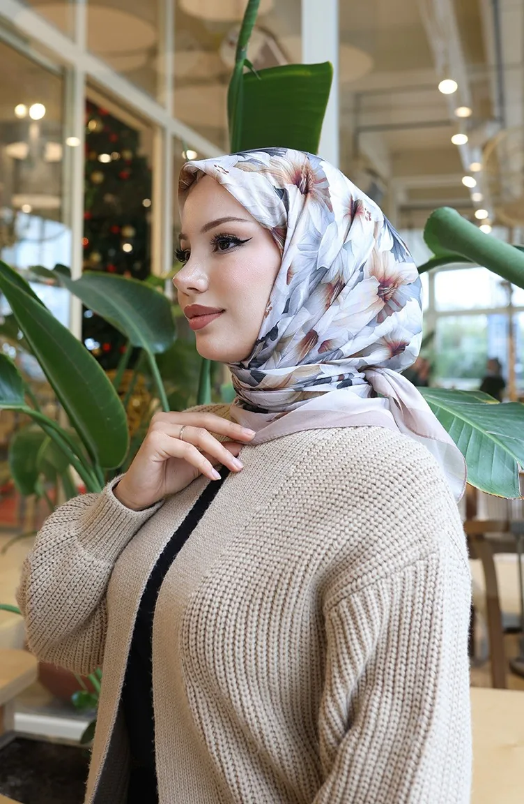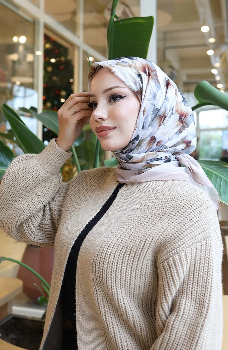 Sjaal Met Bloemenpatroon 70332-05 Mink Milk Coffee 70332-05