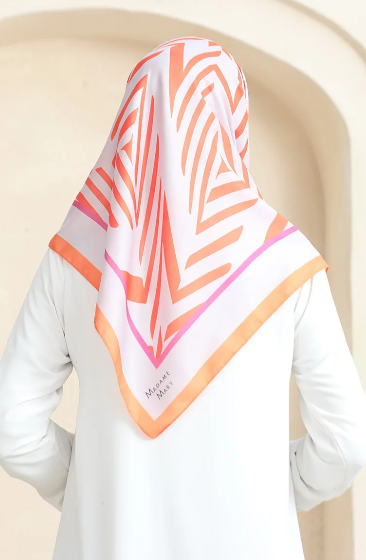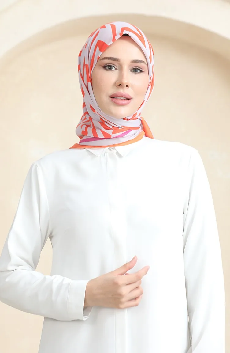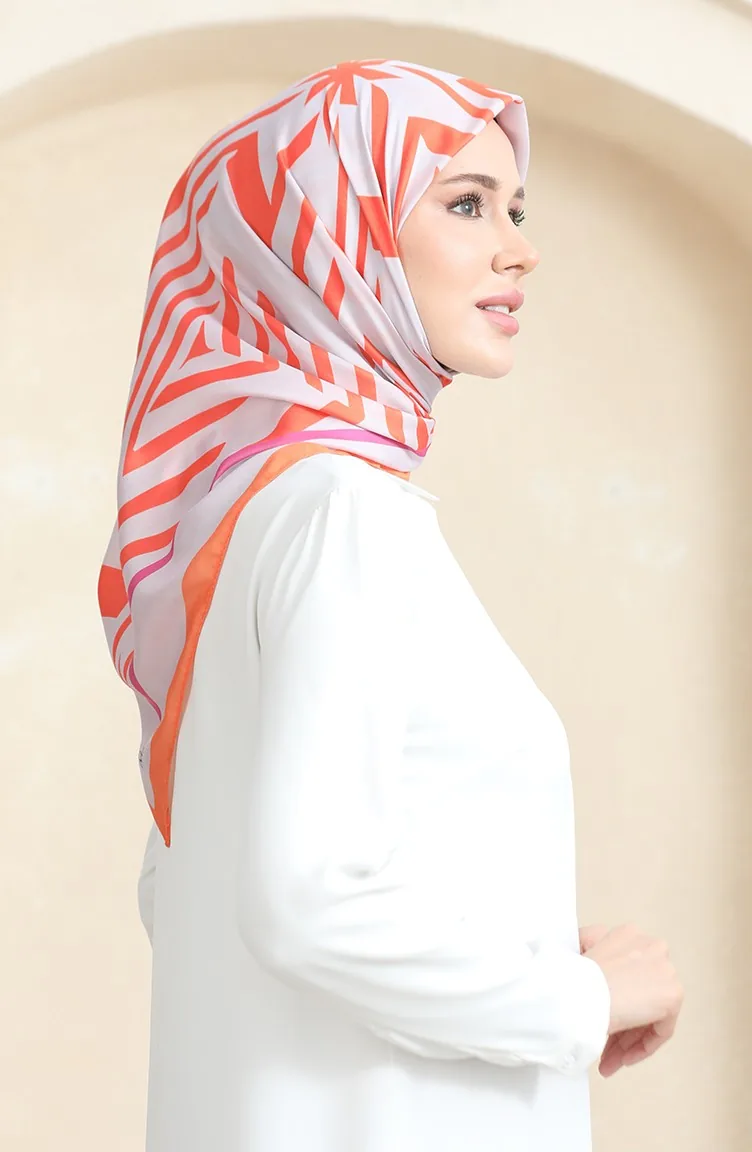 Zachte Katoenen Sjaal 19092-14 Lichtgrijs Oranje 19092-14