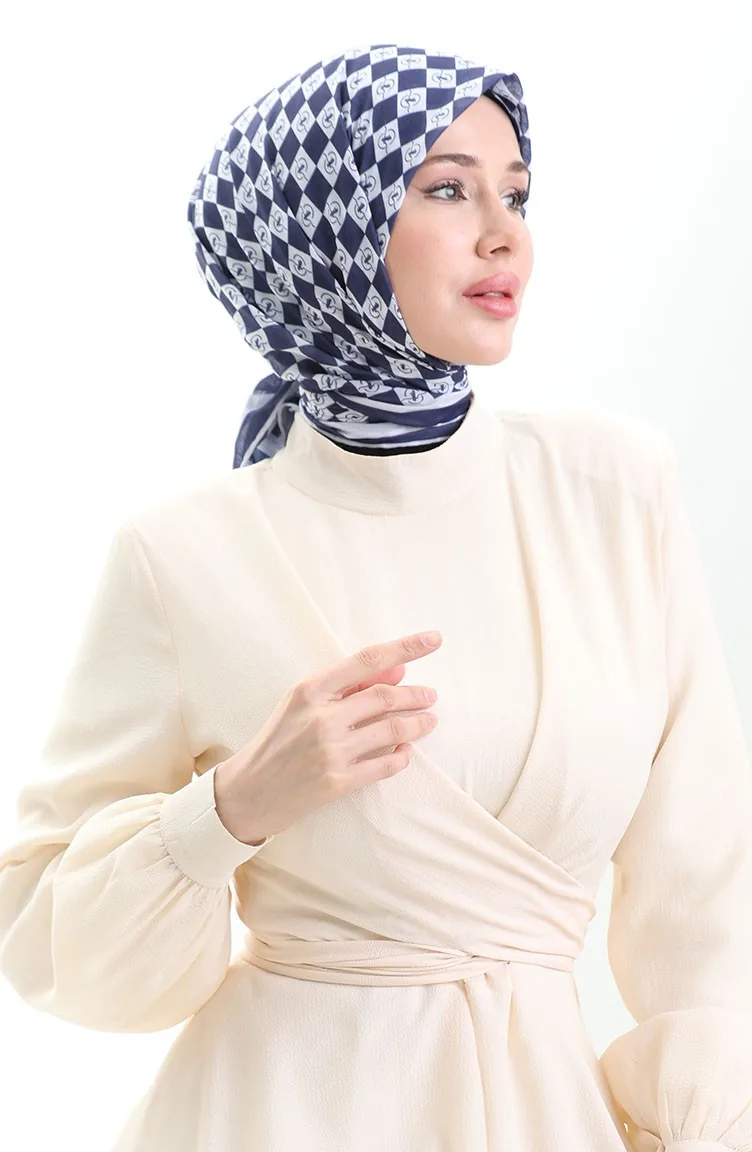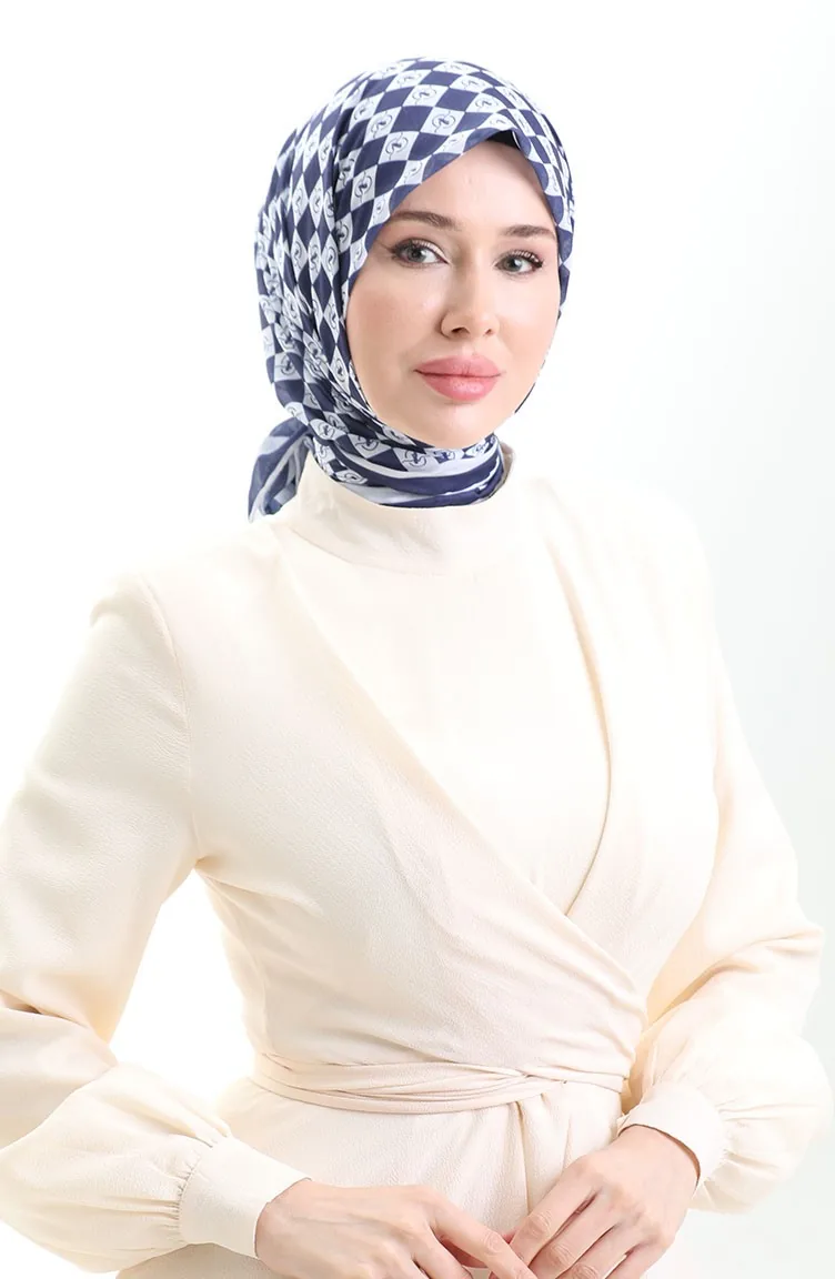 Zachte Sjaal Met Patroon 70294-11 Marineblauw 70294-11