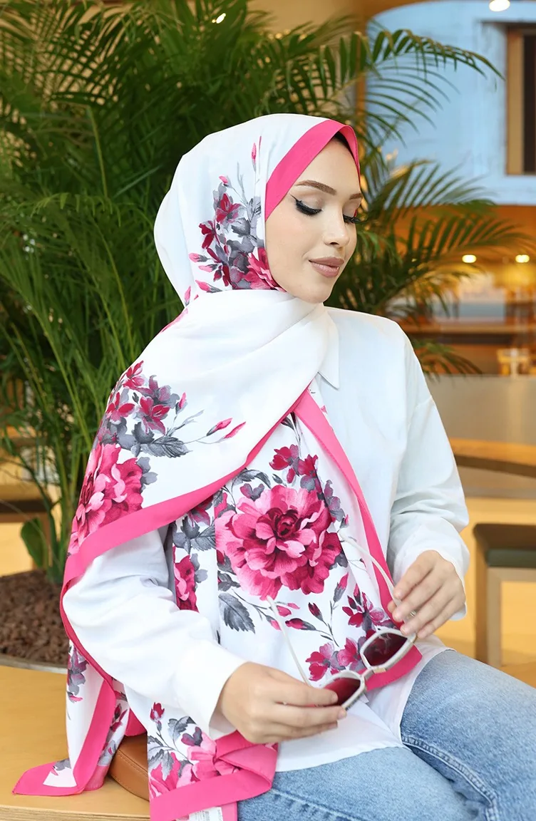 Capri-sjaal Met Bloemenpatroon 70349-01 Fuchsiagrijs 70349-01