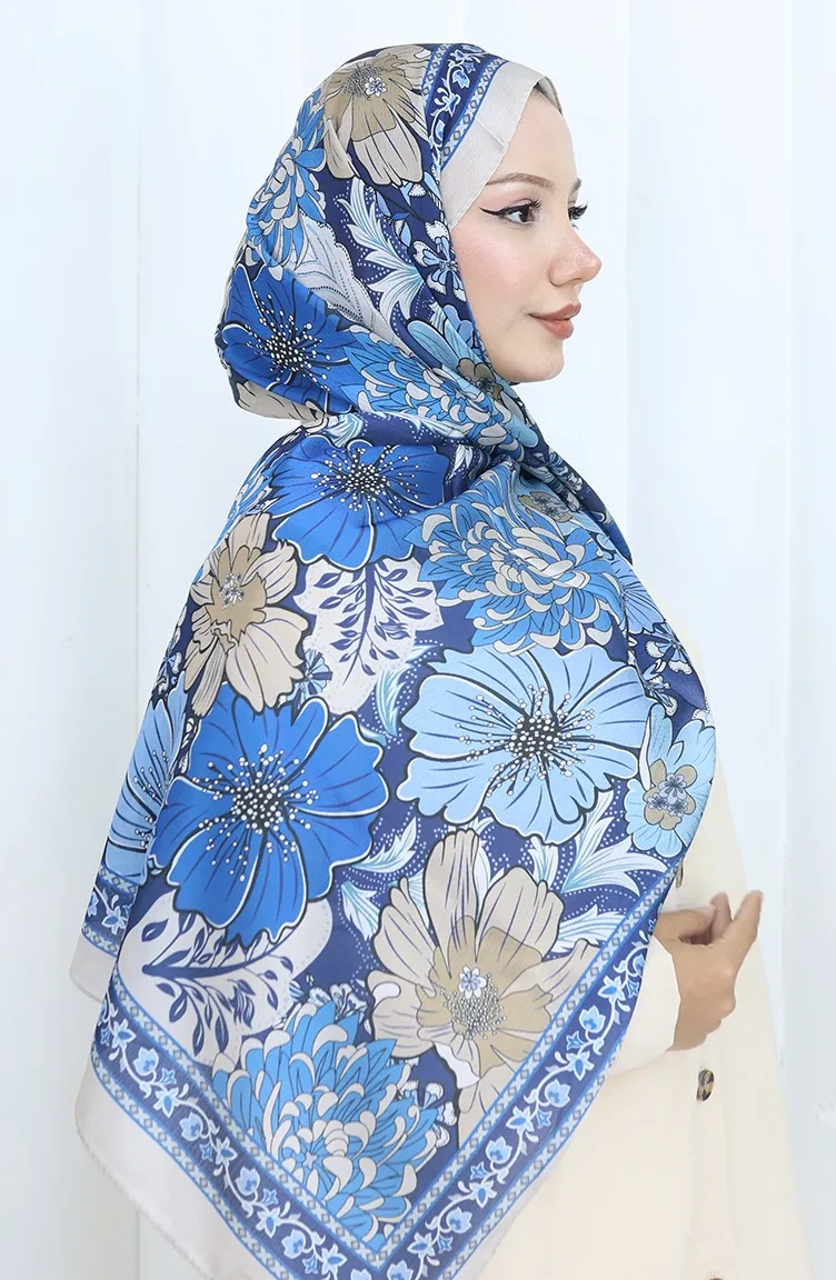 Champagnekleurige Bloemensjaal 70319-06 Beige Marineblauw 70319-06