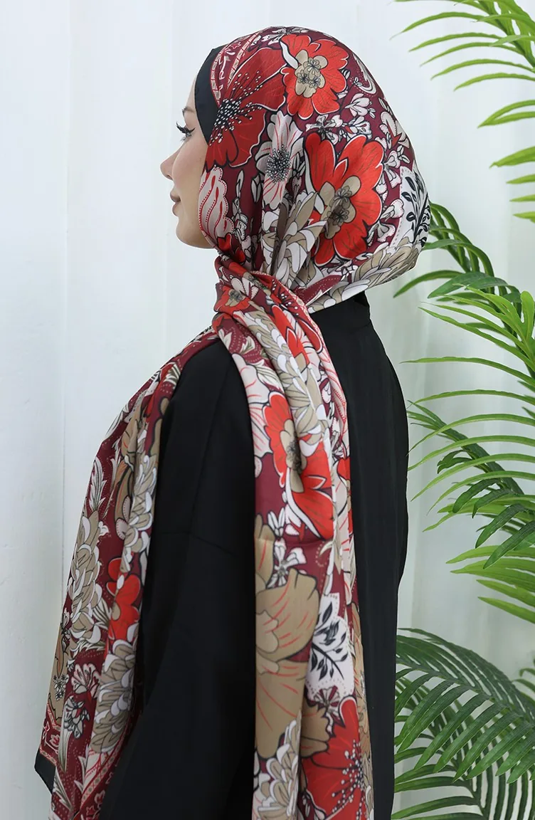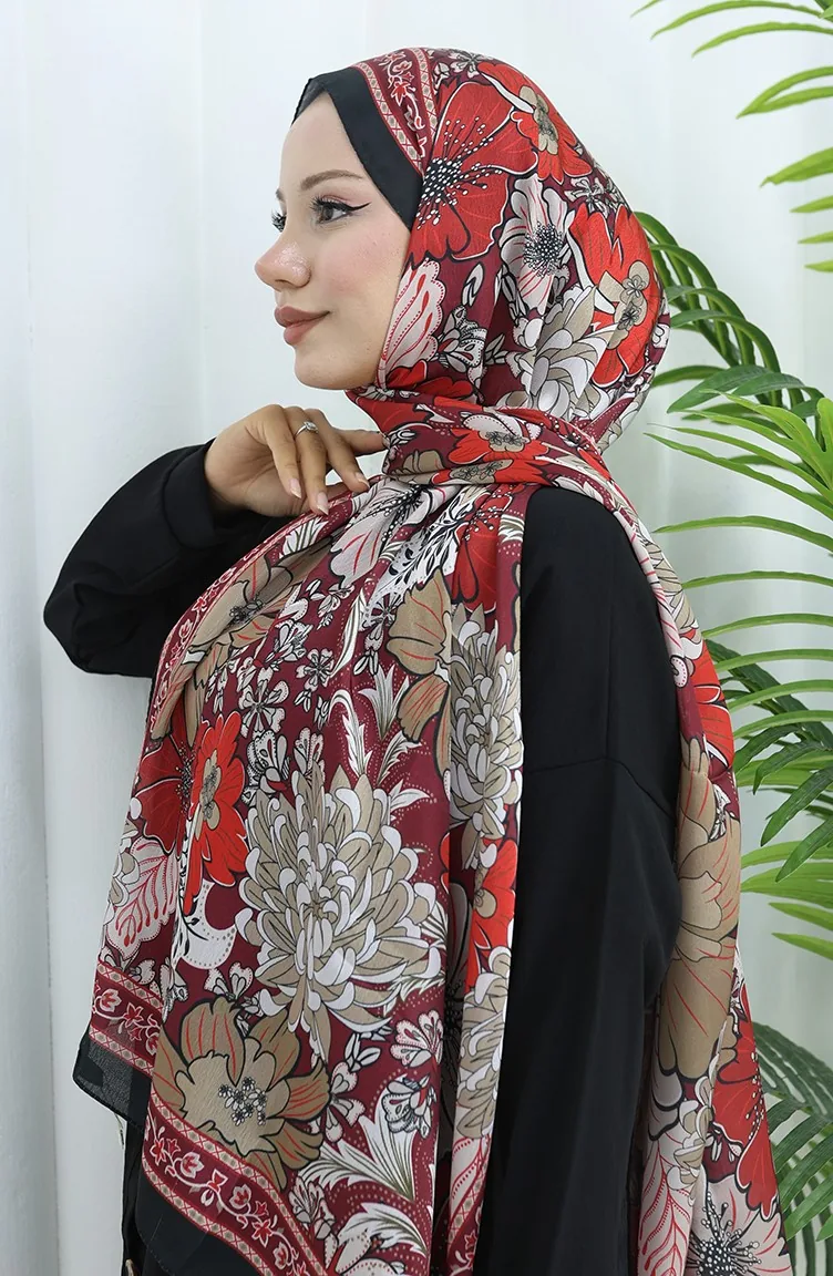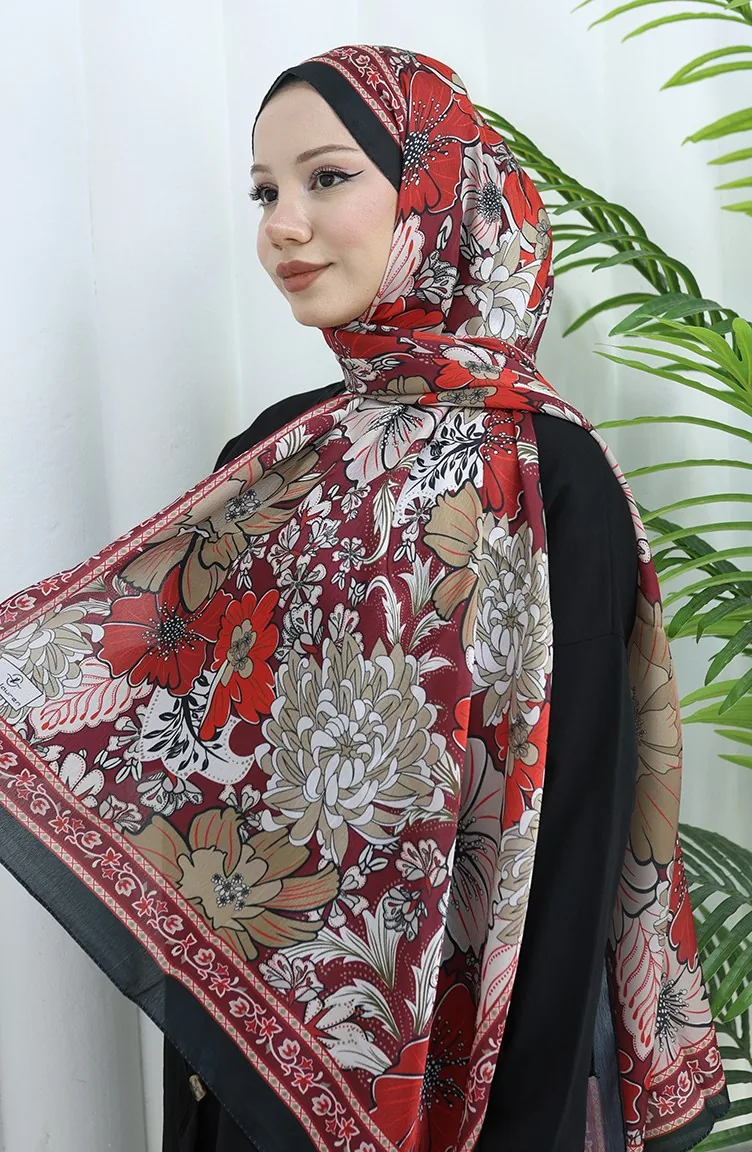 Champagnekleurige Bloemensjaal 70319-12 Zwart Bordeauxrood 70319-12