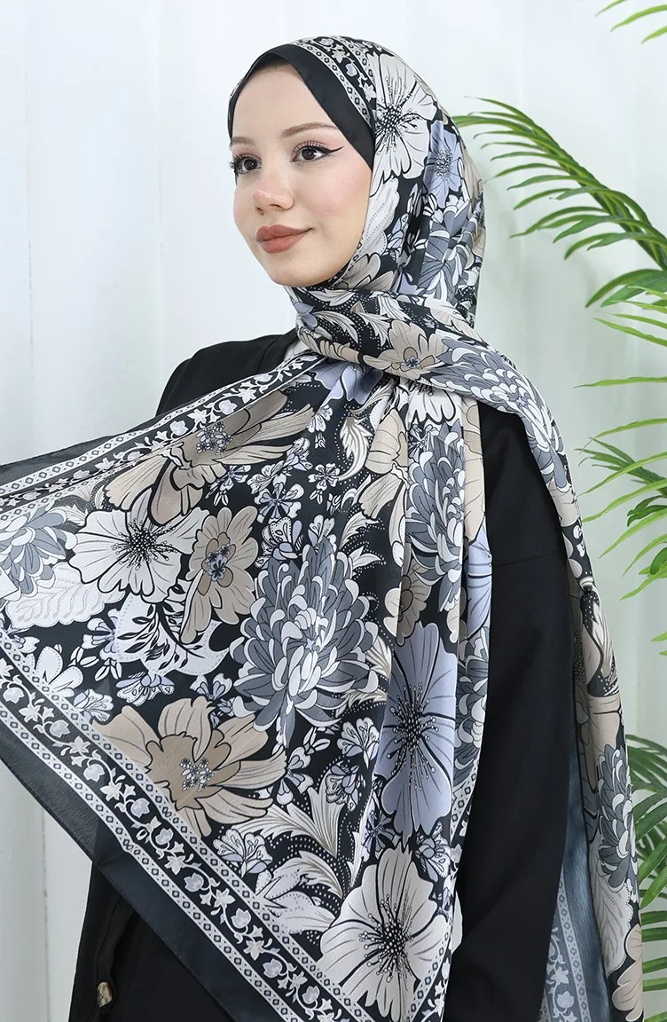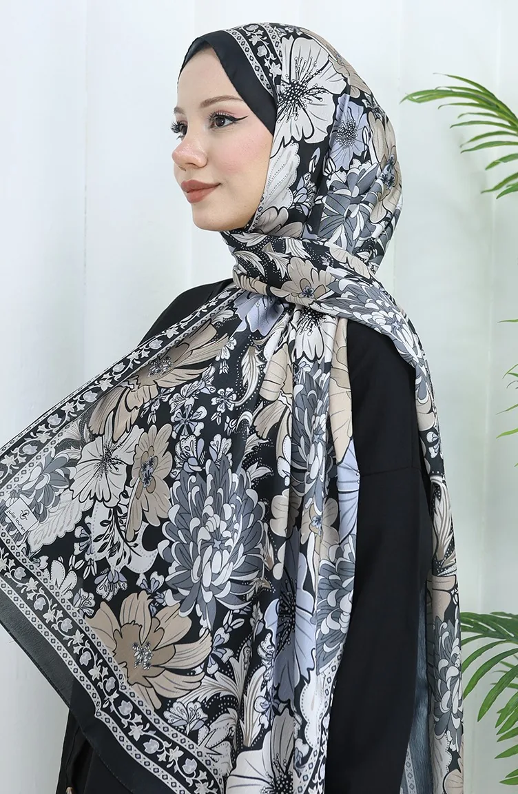 Champagnekleurige Bloemensjaal 70319-13 Zwarte Nerts 70319-13