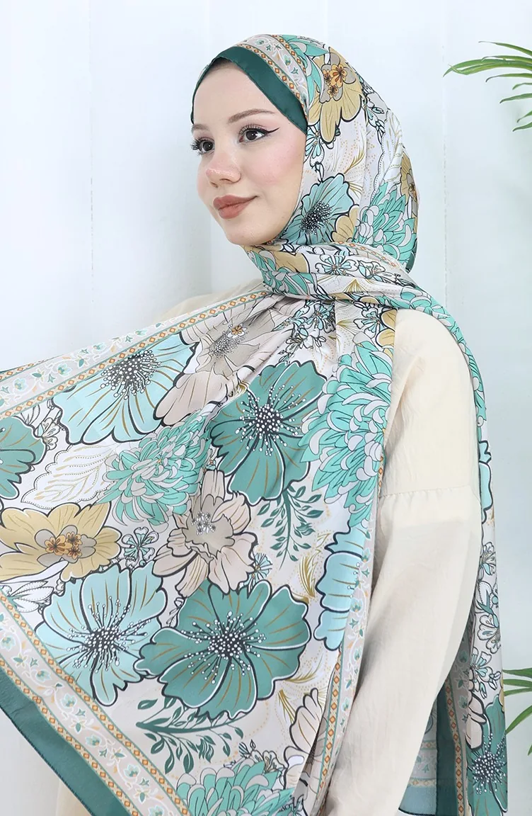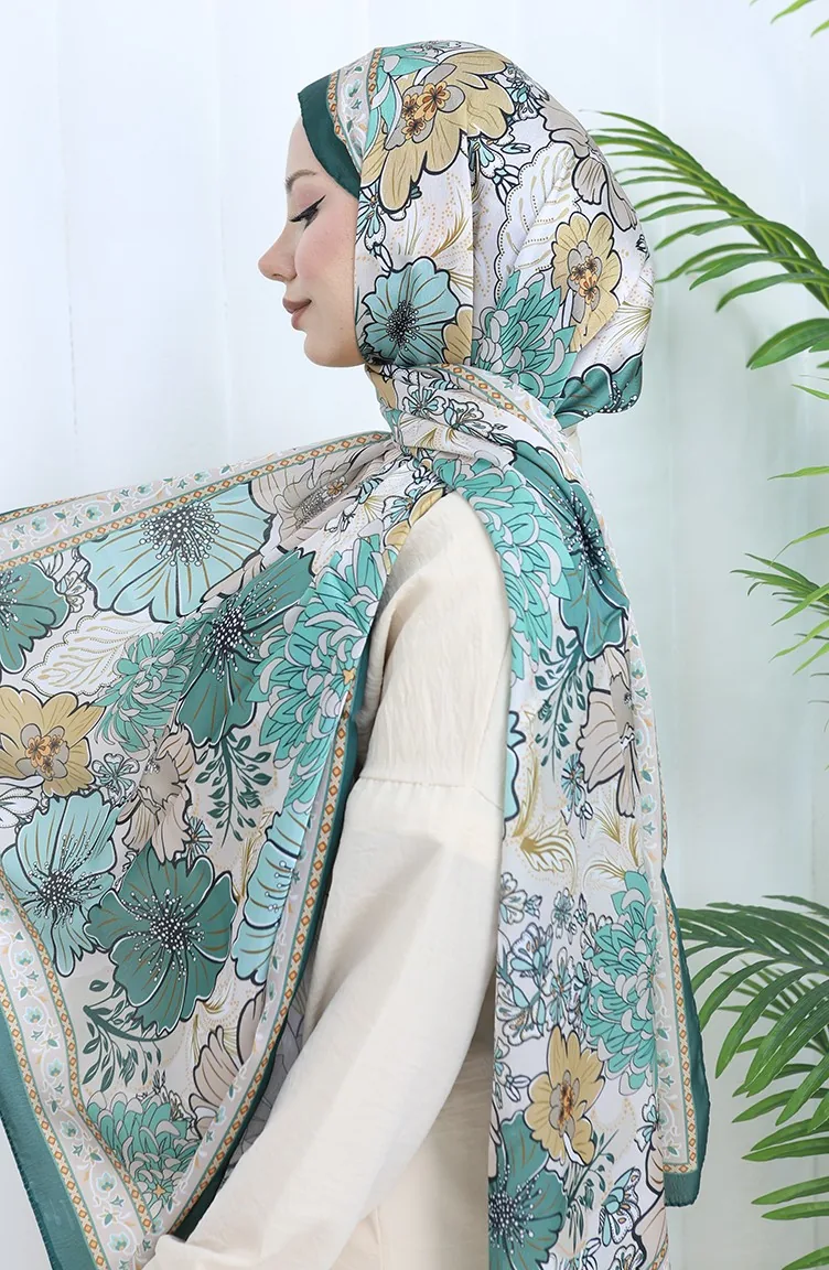 Champs Elysees Bloemenpatroon Sjaal 70319-17 Smaragdgroen Amandelgroen 70319-17