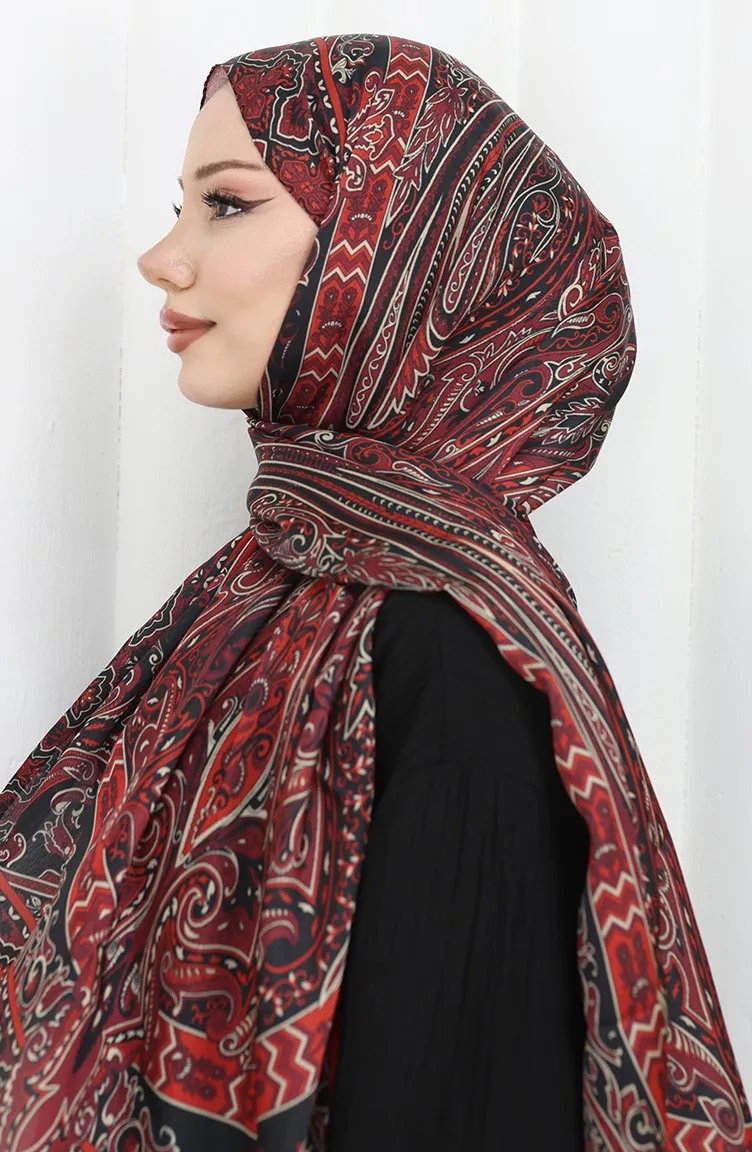 Etnisch Patroon Janjan Shawl 70305-10 Claret Rood Zwart 70305-10