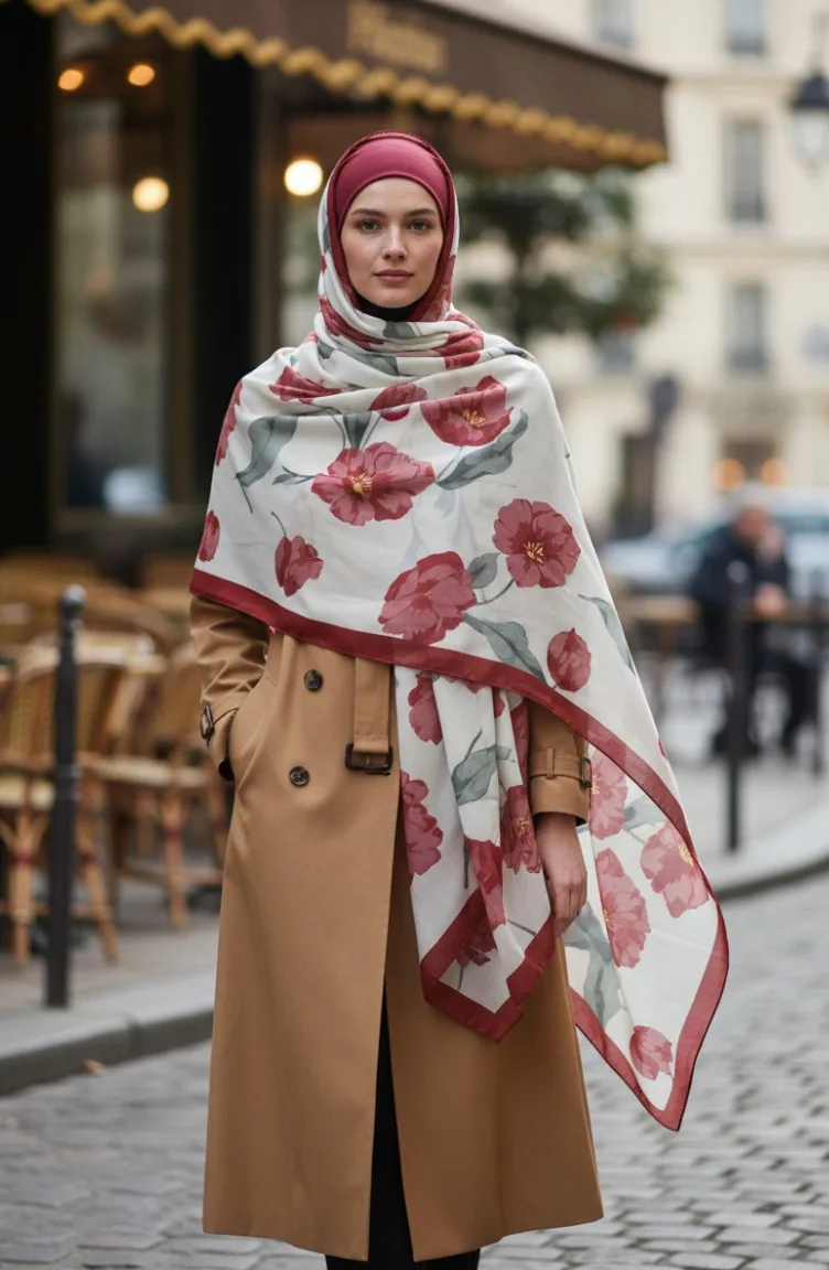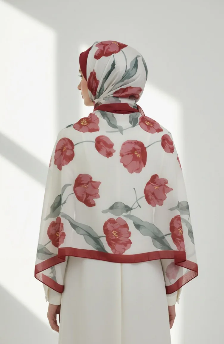 Gedessineerde Sjaal 1008-03 Khaki Bordeaux 1008-03