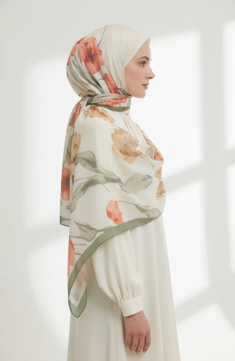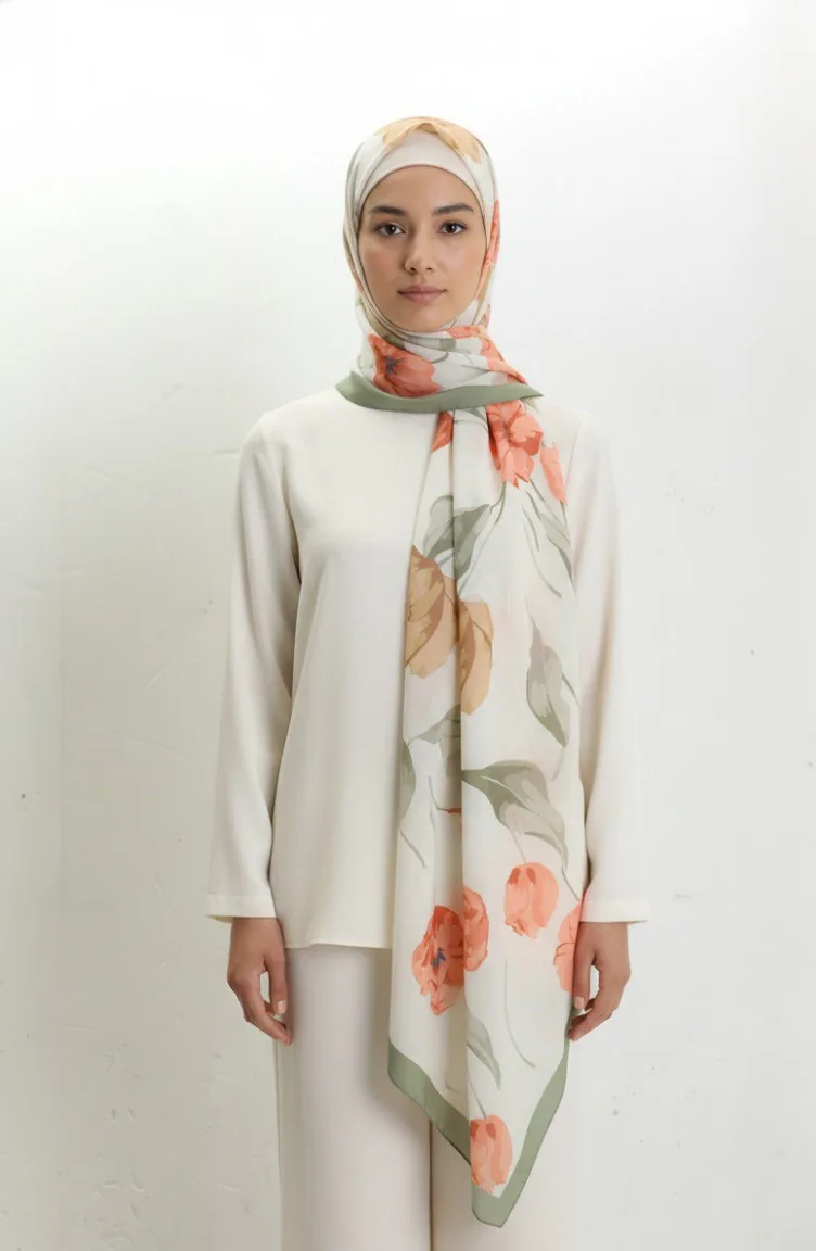 Gedessineerde Sjaal 1008-05 Khaki Terracotta 1008-05