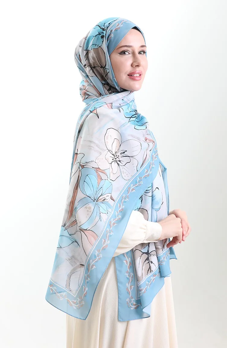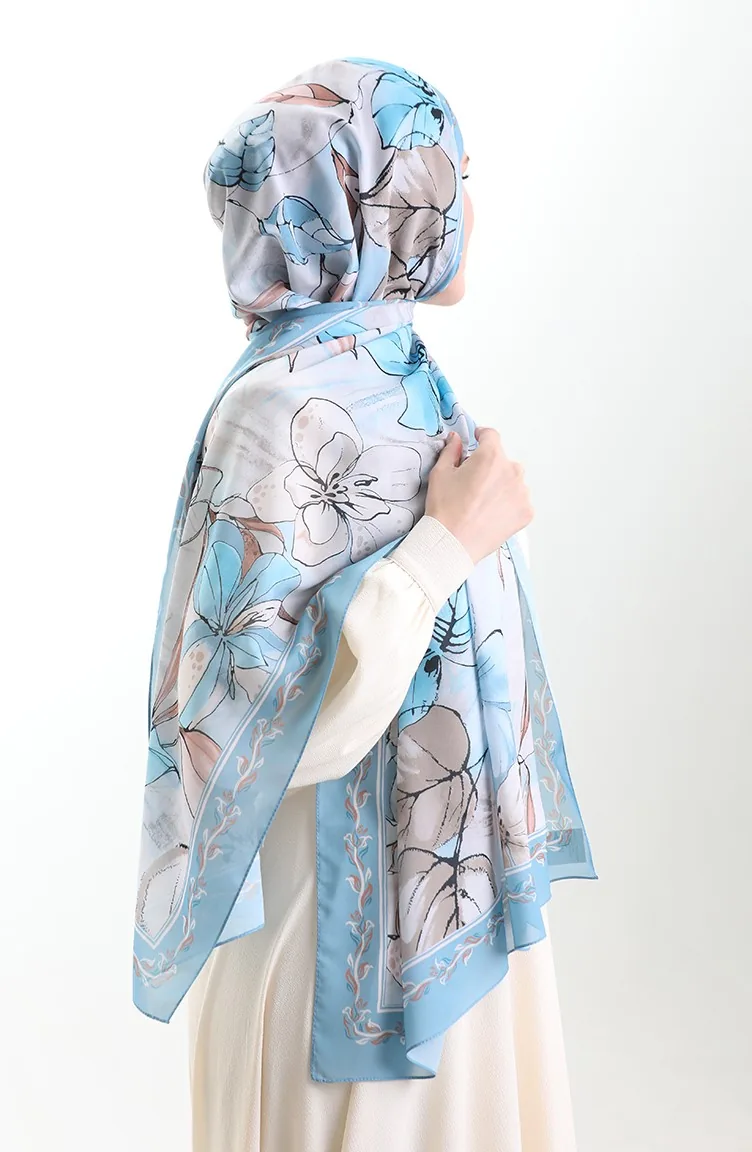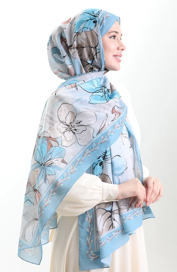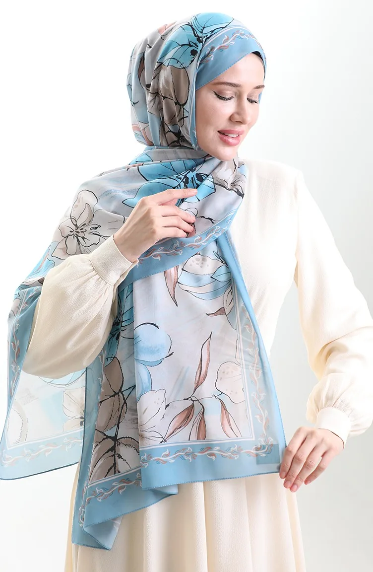 Hanzade Franse Zijden Sjaal 70330-02 Blauwbruin 70330-02