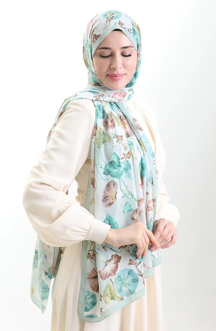 Karaca Katoenen Sjaal 82006-13 Zeegroen Bruin 82006-13