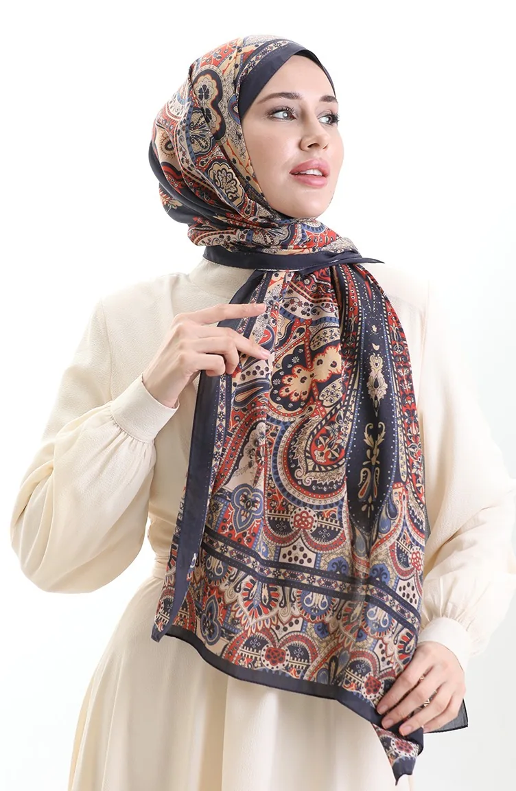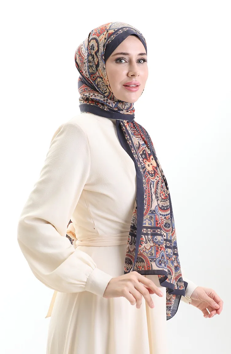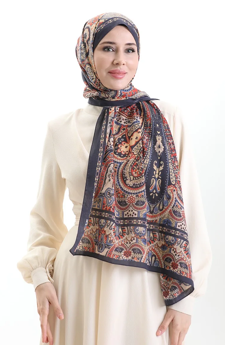 Karaca Katoenen Sjaal 82007-09 Marineblauw Crème 82007-09