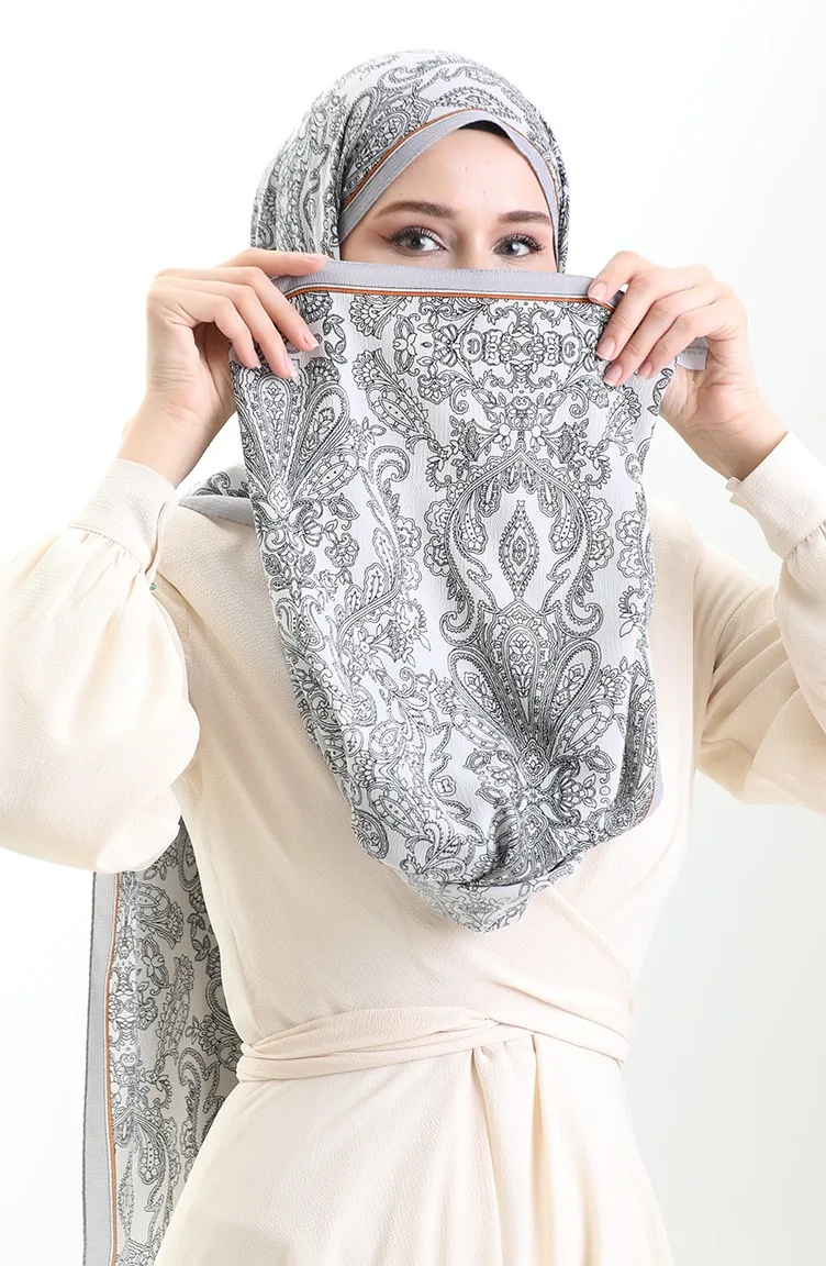 Mio Crepe Sjaal Met Karaca Patroon 81099-05 Grijs 81099-05