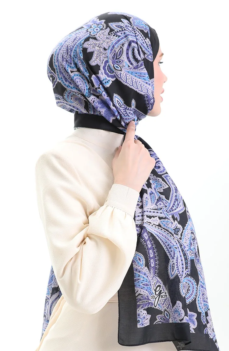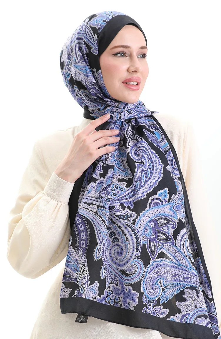 Zachte Sjaal Met Etnisch Patroon 70296-06 Zwart Lila 70296-06