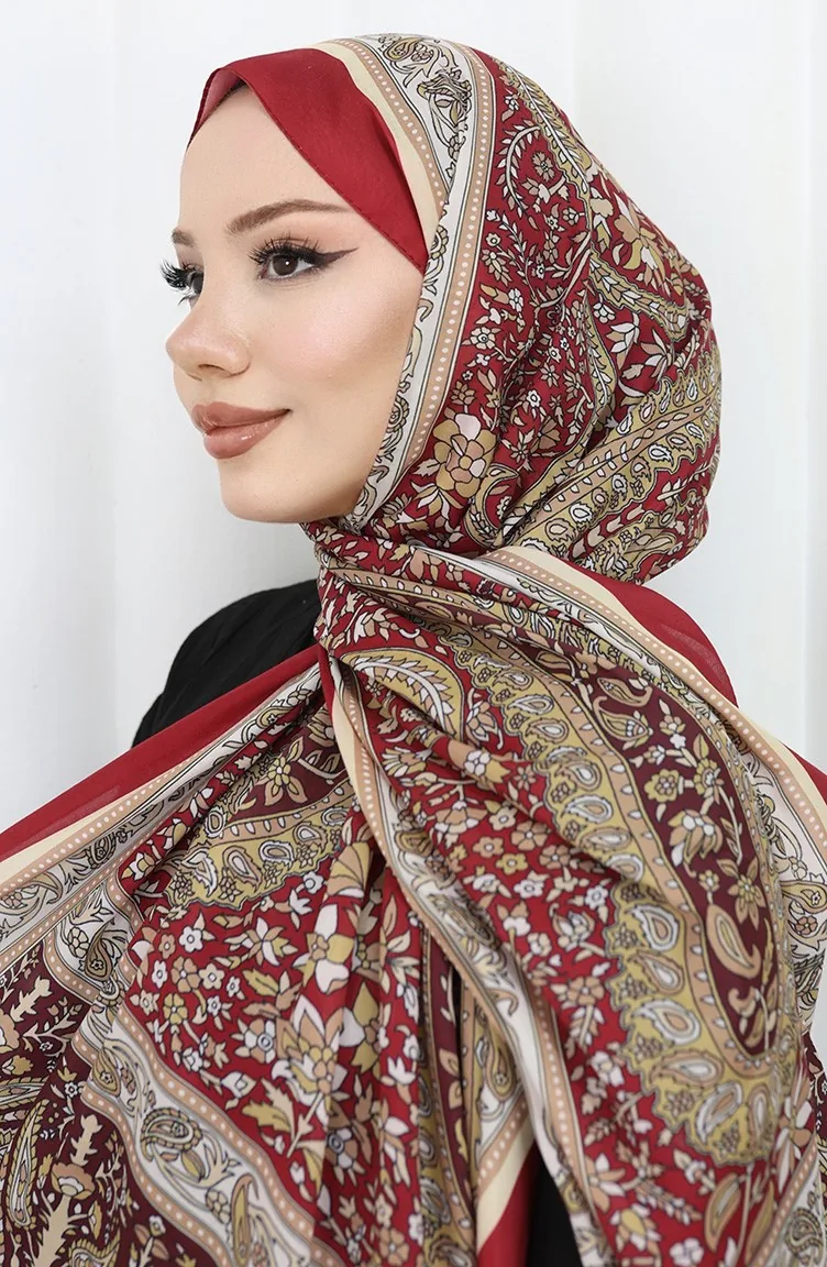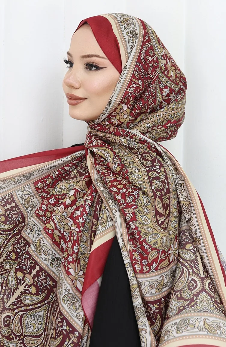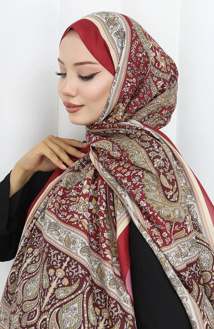 Zachte Sjaal Met Etnisch Patroon 70312-09 Claret Red Cream 70312-09