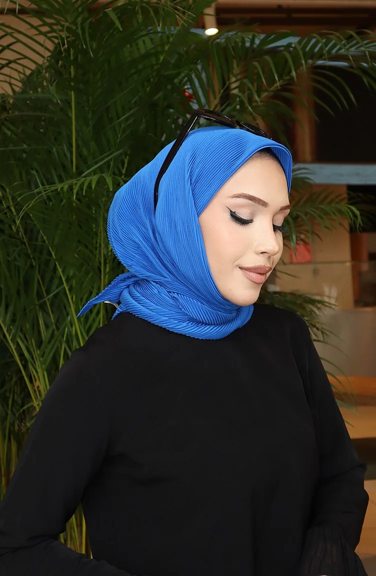 Saxon blue color is used. Polyester fabric often prevents wrinkling. It has a plain appearance. Suitable for 4 seasons. Length is adjusted according to standard size measurements.