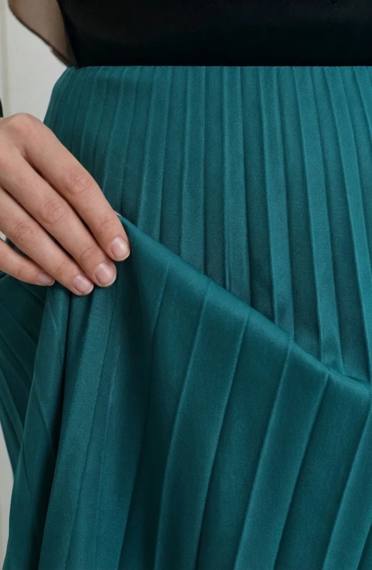 Geplooide Rok Met Elastische Tailleband 0213-09 Petrol 0213-09